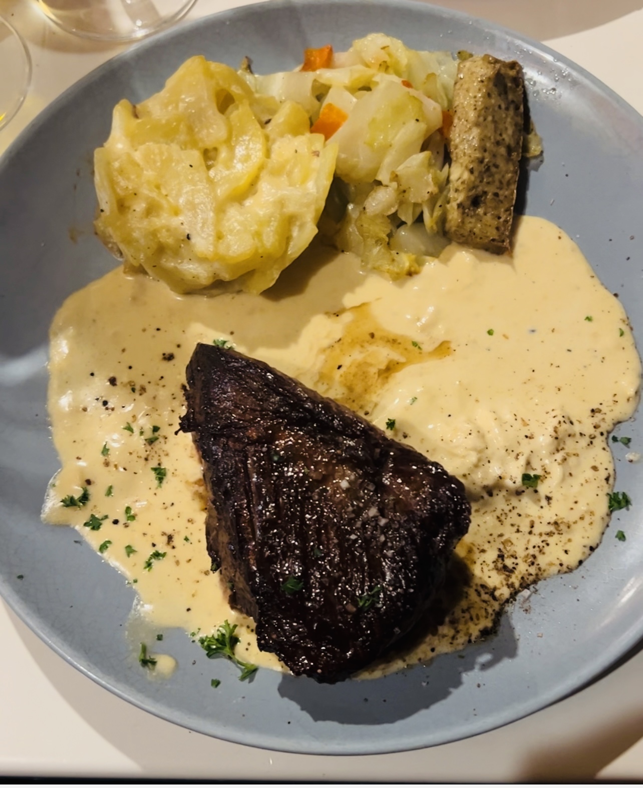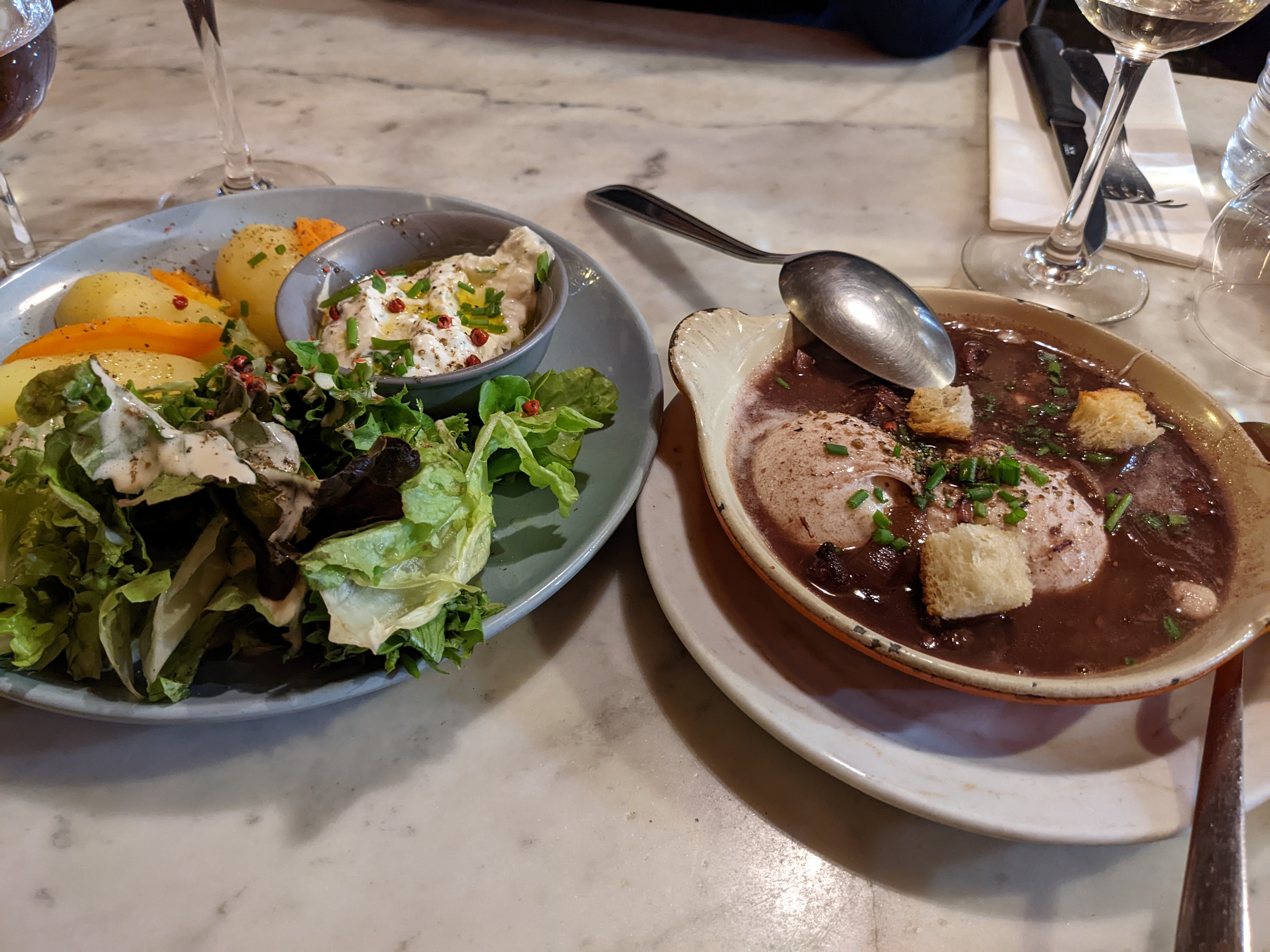 Plaisir épicurien partagé avec ma fille pour une visite éclair sur Lyon, de une je reviendrai là, de 2 je prends l'onglet, car je n'arrêtais pas de lorgner sur celui du voisin !! En plus les voisins étaient sympas, que demander de mieux !