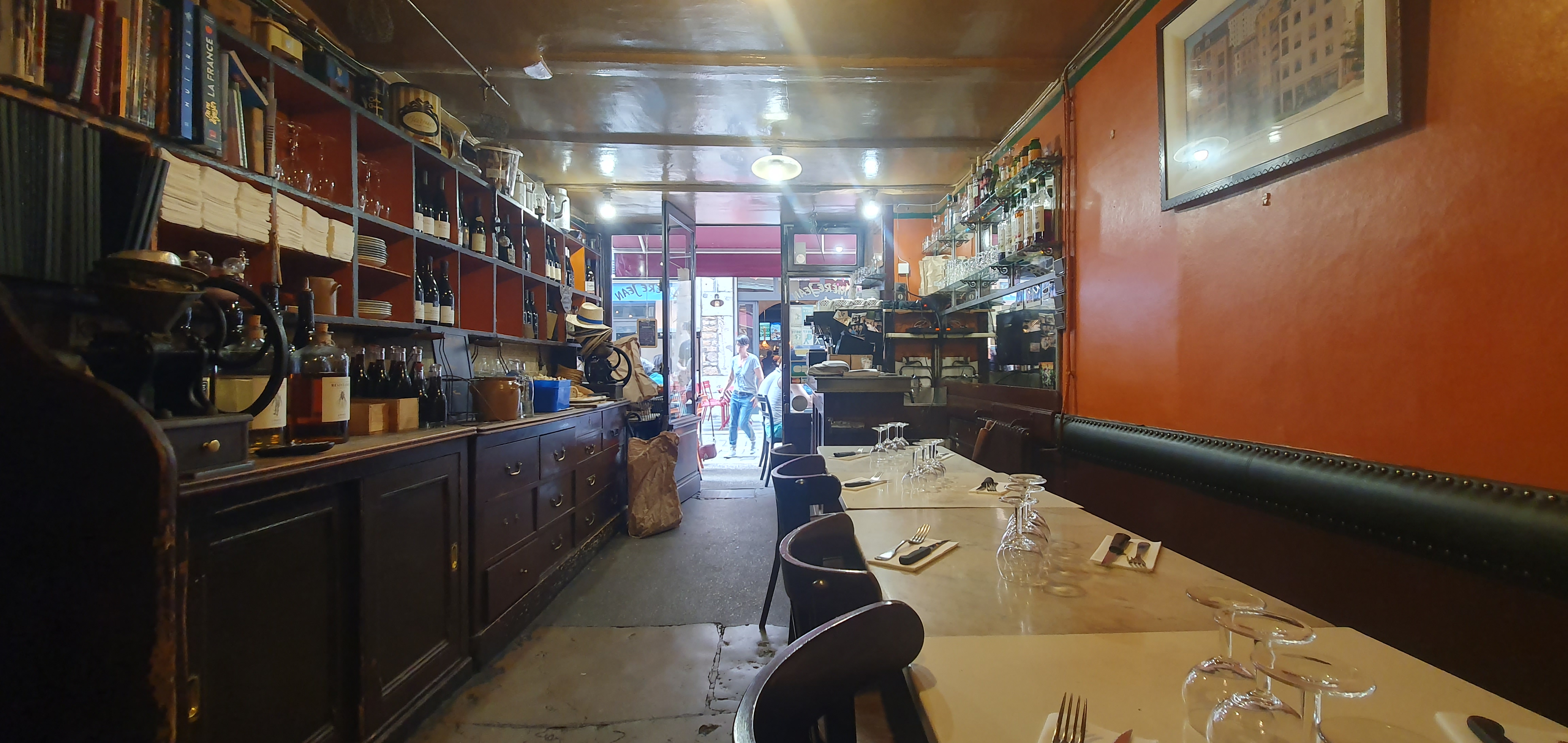 Petit bouchon sympathique de l extérieur. A l’intérieur on retrouve l’authenticité d’un restaurant à l’ancienne, mais les plats sont certes à l’ancienne mais manque de goût. Je met 3 étoiles car cela mérite la moyenne mais le prix est exorbitant pour la qualité. Je ne comprend vraiment pas vos commentaires dithyrambique…