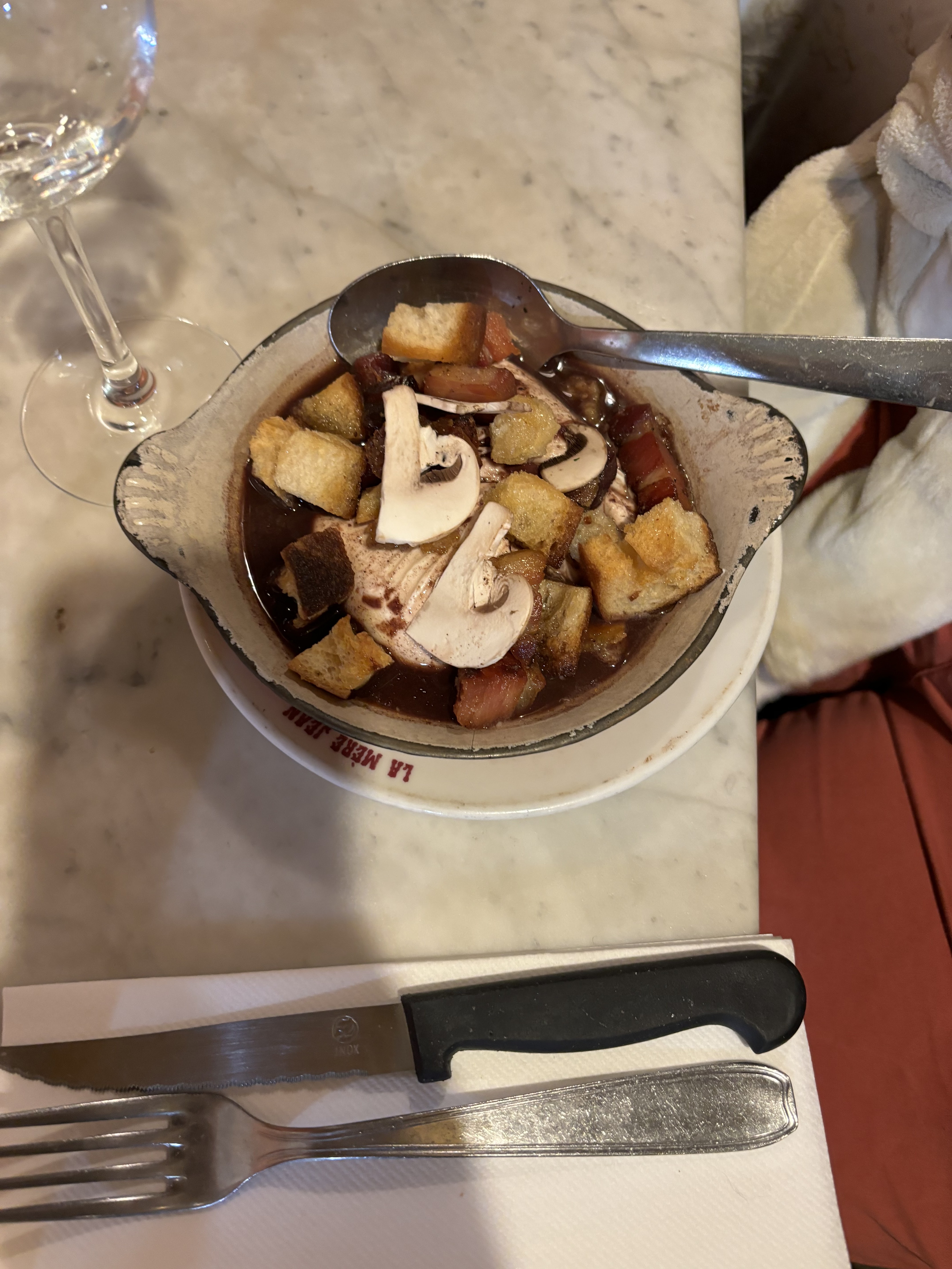 L'une de mes meilleures expériences culinaires de ma vie en rapport qualité prix,ne chercher pas de bouchons lyonnais sur TripAdvisor ou Google maps,allez réserver chez La mère Jean vois ne serrez pas dessus, restaurant dans son jus, cuisine délicieuse 😋,je ne serai que vous là recommander. Merci pour cette soirée.... Mon prix affiché comprend menu a 30€ (entrée/plat/dessert)avec 2 pichets de rouge.