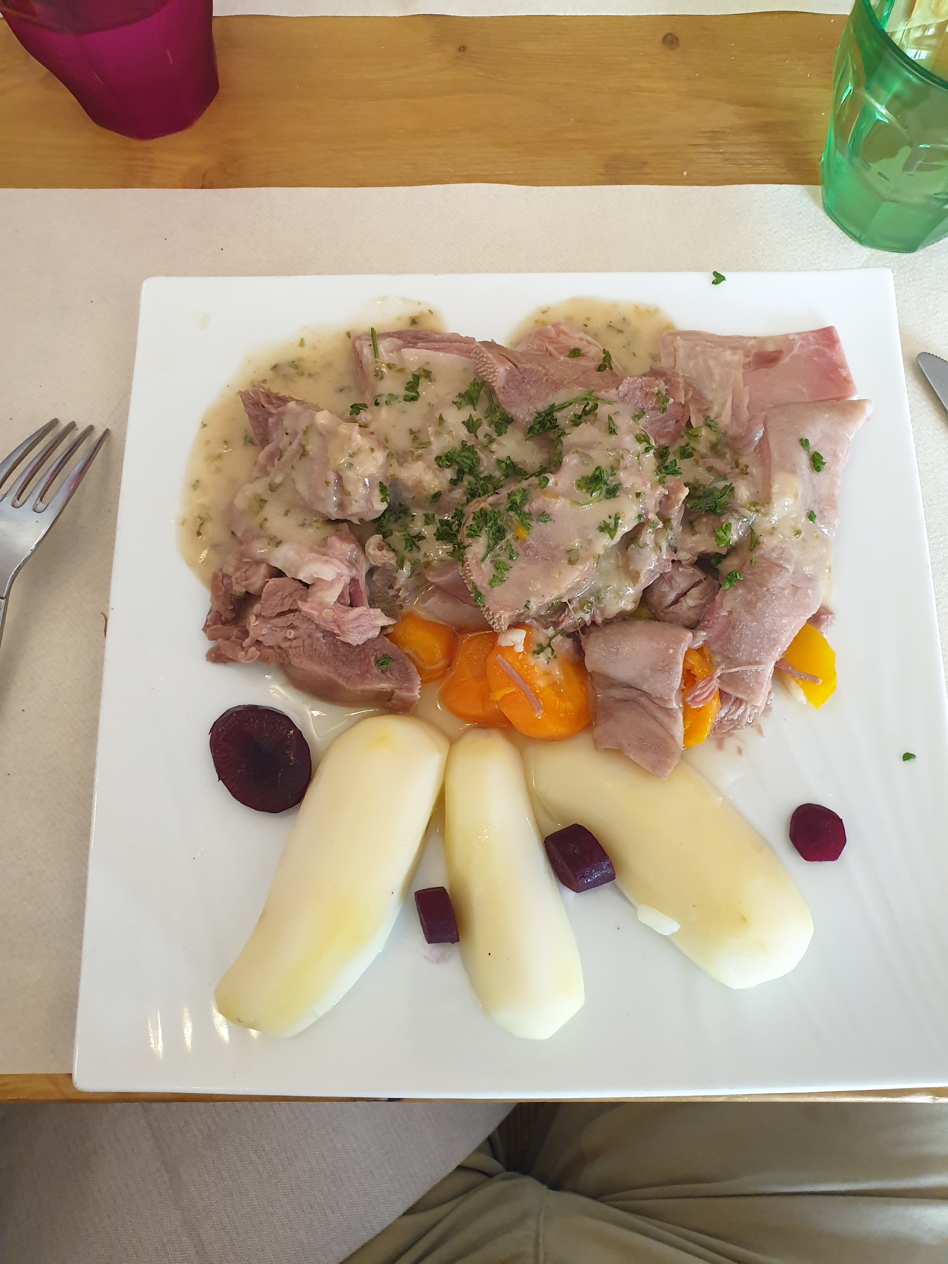Tête de veau trop cuite délavé Assiette copieuse