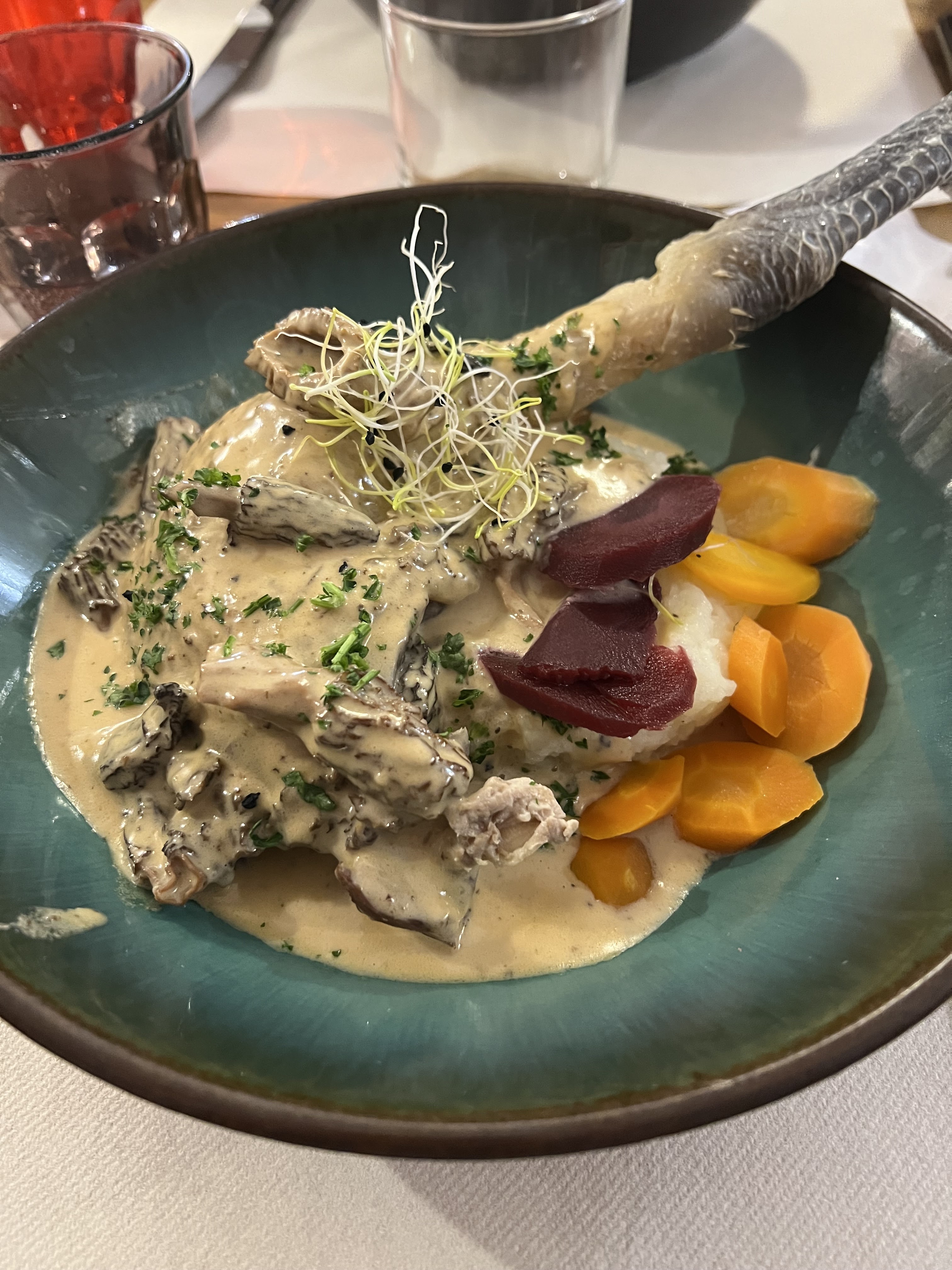 Très bonne table, le foies gras, poêlé juste comme il faut, le poulet au vin jaune excellent, très bonne sauce tout était très bon si je pouvais dire un petit point faible serais l'affinage des fromages un peu juste en saveur qui ne va pas avec les mets d'avant. Nous le recommandons 01.10.20.