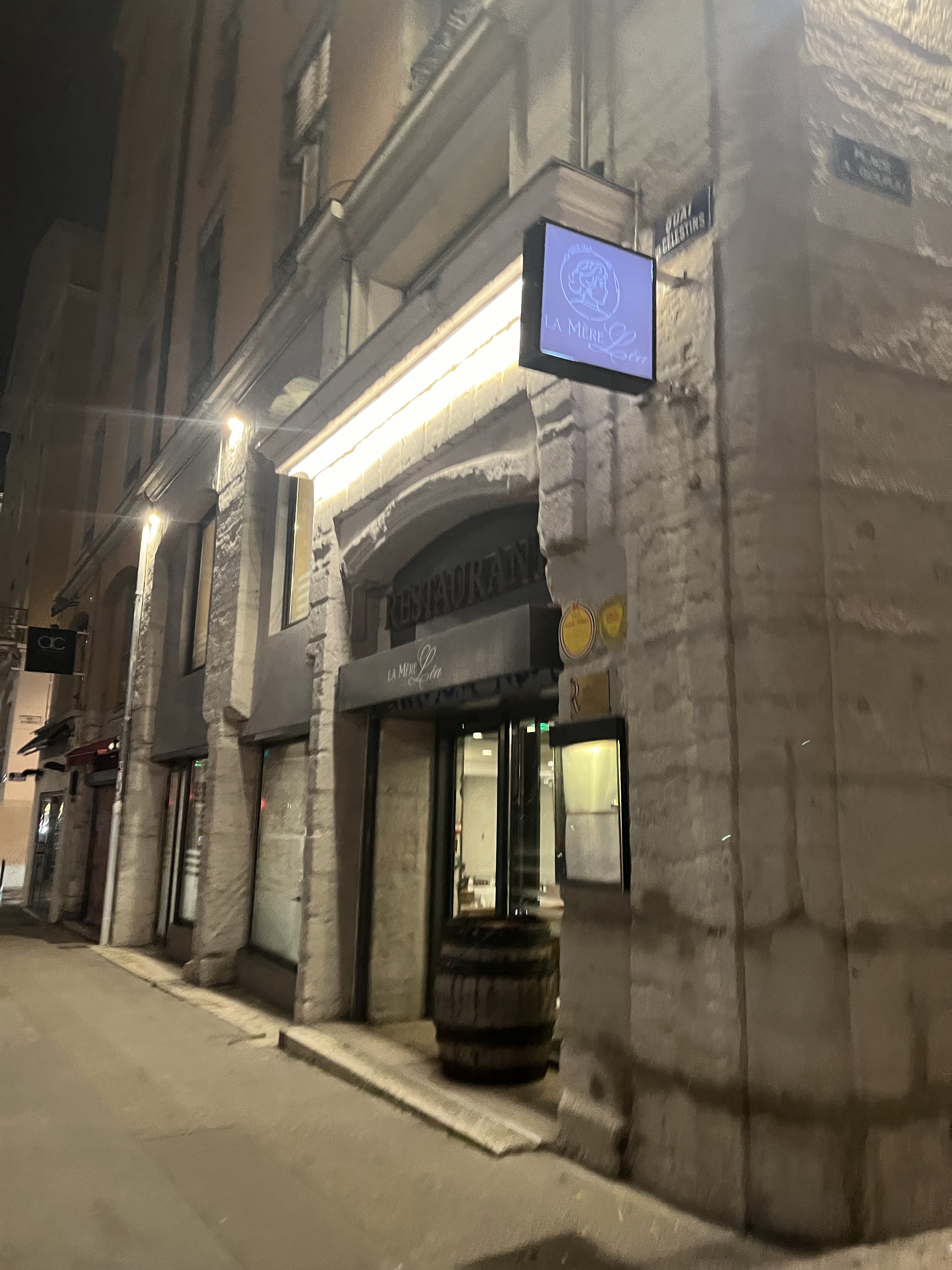 J'ai eu l'occasion d'aller dans l'établissement à deux reprises, aux deux entrées distinctes de la maison. Une première fois, à l'occasion de la coupe du monde féminine de football. Cela c'était très bien passé. La deuxième fois, pendant la dernière fête des lumières où était proposé un menu spécial. J'ai choisi les spécialités lyonnaises, j'étais venu pour cela. Je remercie la patronne de m'avoir donné accès au restaurant malgré l'affluence en m'installant dans les courants d'air aux premières loges de l'élaboration des plats. Le service a été impeccable. Les plats étaient bien consistants et auraient pu nourrir deux personnes ! Mon grand regret est la quenelle de brochet trop consistante à mon gout servi avec du riz qui n'était pas cuit :( Peut-être la pression d'une soirée particulière où il fallait envoyer les plats au plus vite ! J'avais pourtant indiqué au serveur que je n'étais pas pressé par le temps malgré la fête des lumières.