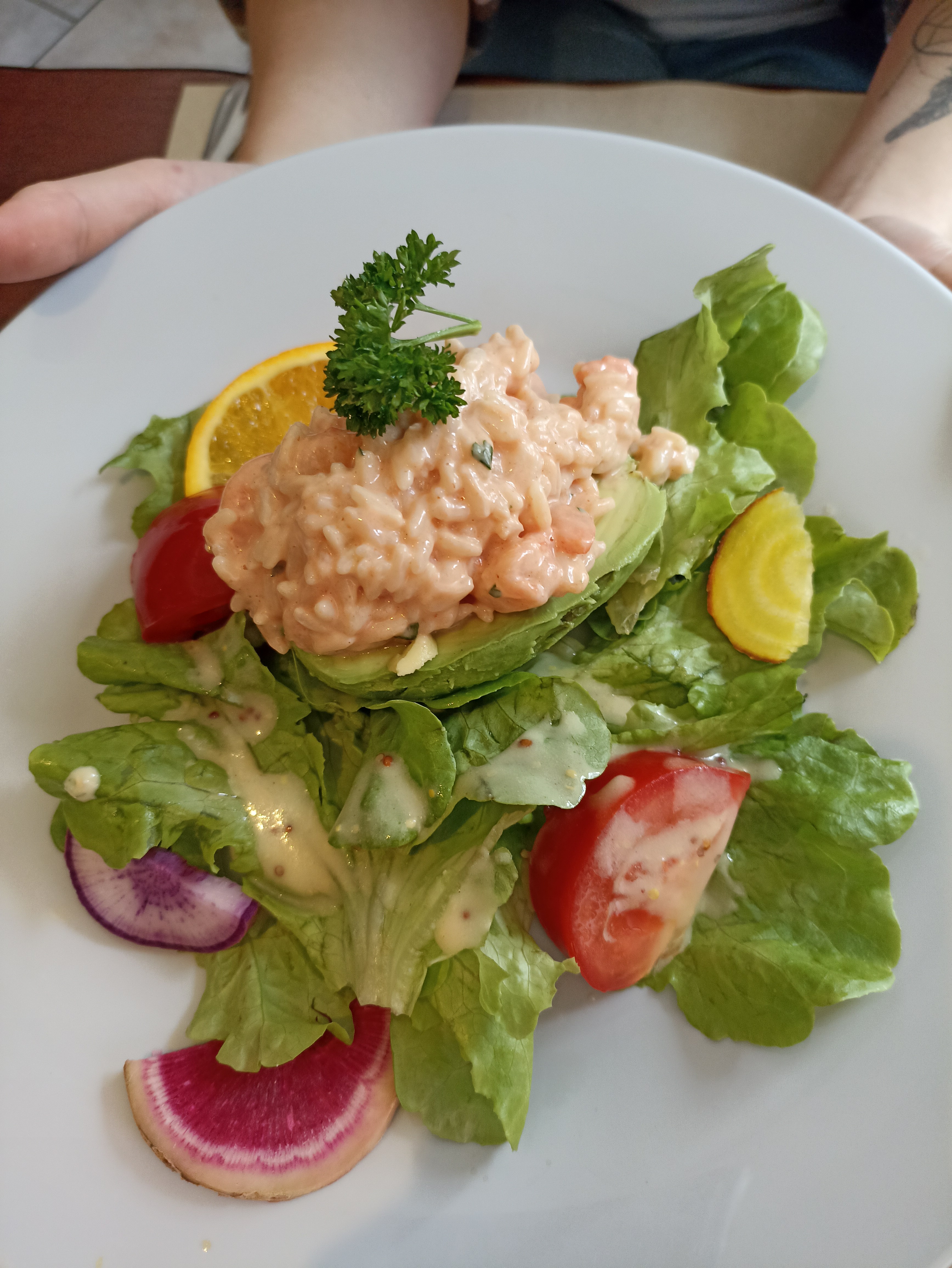Très bien reçu. Produit frais et assiettes copieuses. Très très bon Avons regretter de ne pas prendre les burgers quand on a vu arriver l'assiette de la table d'à coté. On le recommander à tous