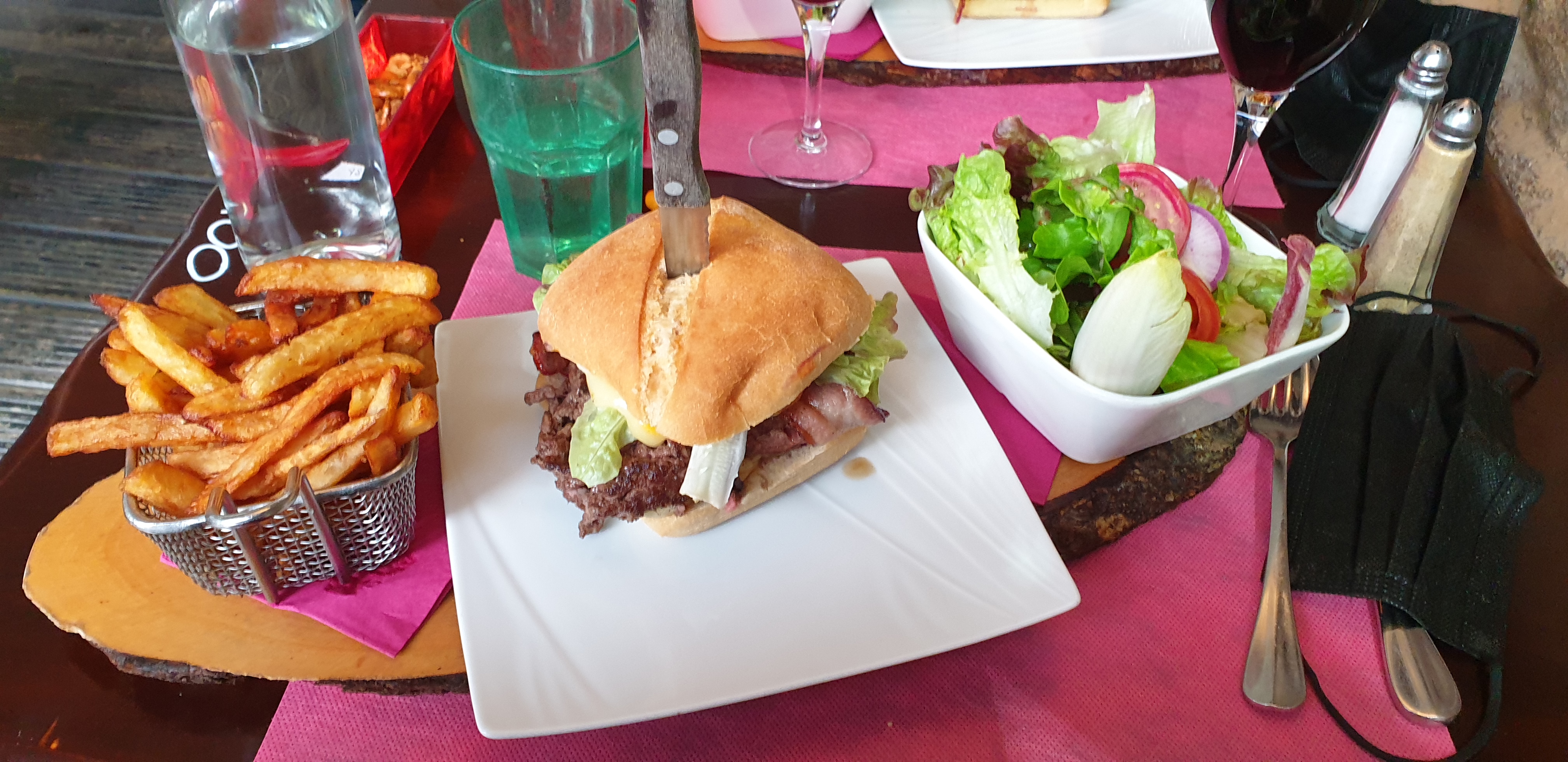 Un menu certes très appétissant à première vue, cependant le rapport qualité prix n'est pas respecté. L'assiette de saumon est très joliment présentée mais le goût n'y est pas. Une surcharge de l'assiette pour cacher le fade du saumon frais ? Le burger est très sec, bien que la viande soit assez bonne. Note pour plus tard, l'huile de cuisson des frites est à changer de temps en temps ou contacter un autre fournisseur. Le poulet très gras et sa sauce par kilos sur le dessus ne m'as pas convaincu non plus. Je ne vous parle pas du vin qui ne fais pas honneur à l'étiquette et au prix. Je suis très fortement déçu et mets si vous le voulez bien ce service sur le dos du Covid et de la reprise compliquée. Bon courage tout de même pour la suite.