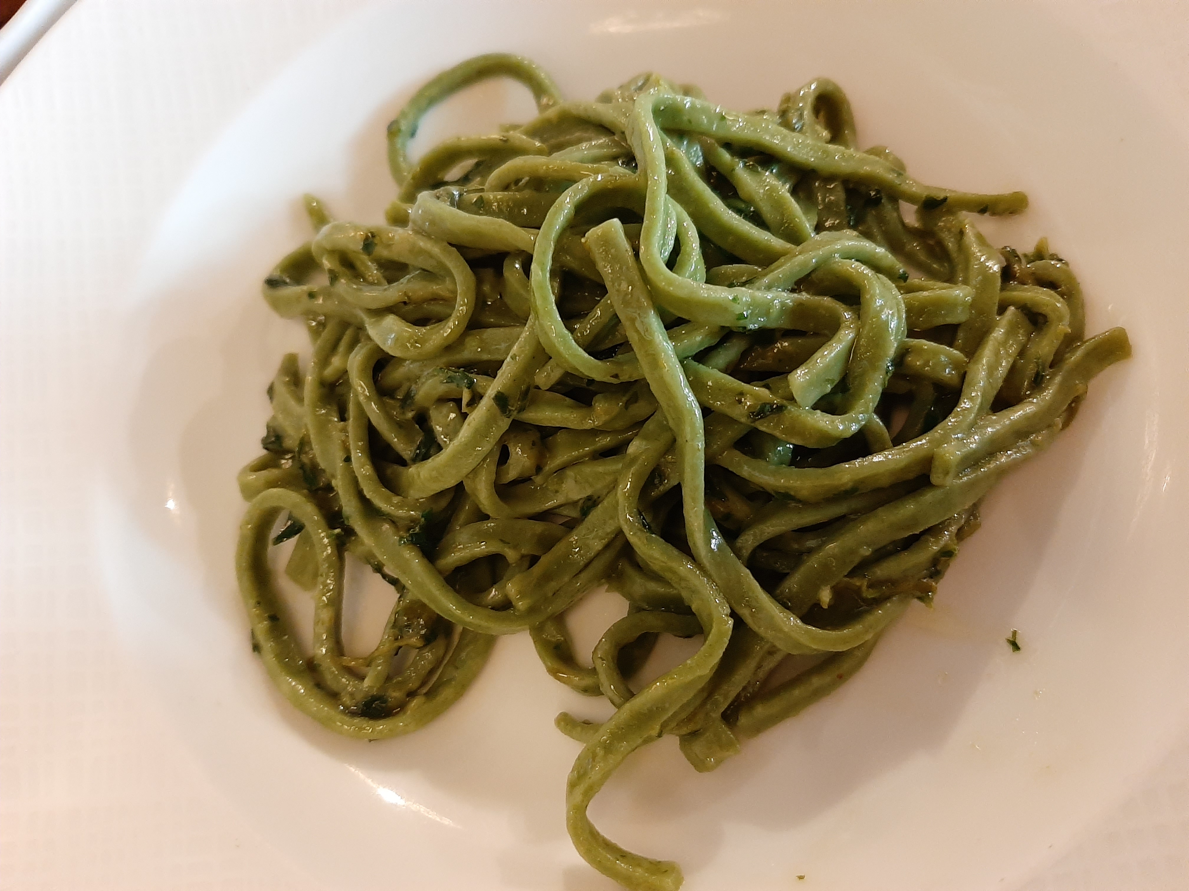 J'ai visité La Merenda pour un déjeuner en solo. La nourriture et l'ambiance étaient bonnes. Je pensais que les portions étaient grandes et j'ai été encouragé à commander une entrée et un plat qui étaient finalement trop de nourriture, ce qui a été gaspillé et a considérablement augmenté ma facture. Je garderais simplement à l'esprit la taille des portions lors de la commande, mais sinon, je recommande à la fois les pâtes au pesto et les tripes.