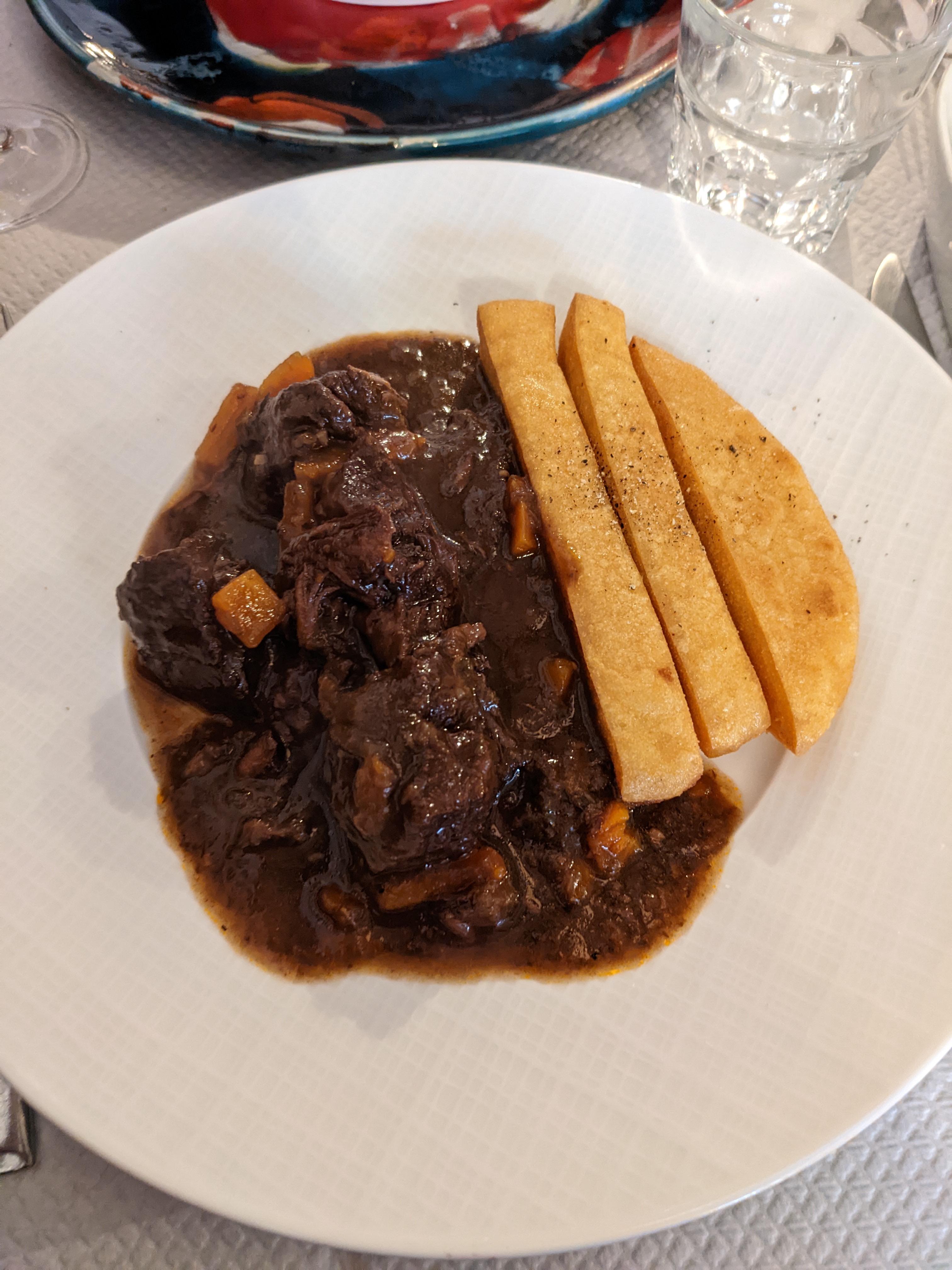 Je suis allé à La Merenda pour le dîner. Les entrées étaient une salade de roquette et une tarte à l'oignon. Les plats principaux étaient des lentilles avec des saucisses italiennes et un ragoût de bœuf à la provençale, le dessert était une crème brûlée à la vanille. Le ragoût de bœuf, servi avec de la polenta croustillante (?) était bon - bœuf tendre, soupe savoureuse - très copieux. Les autres plats étaient moyens. La crème brûlée était tellement trop cuite qu'elle craquait et l'essence de vanille était versée dessus, non mélangée à la crème anglaise. Ils n'acceptaient que les espèces.