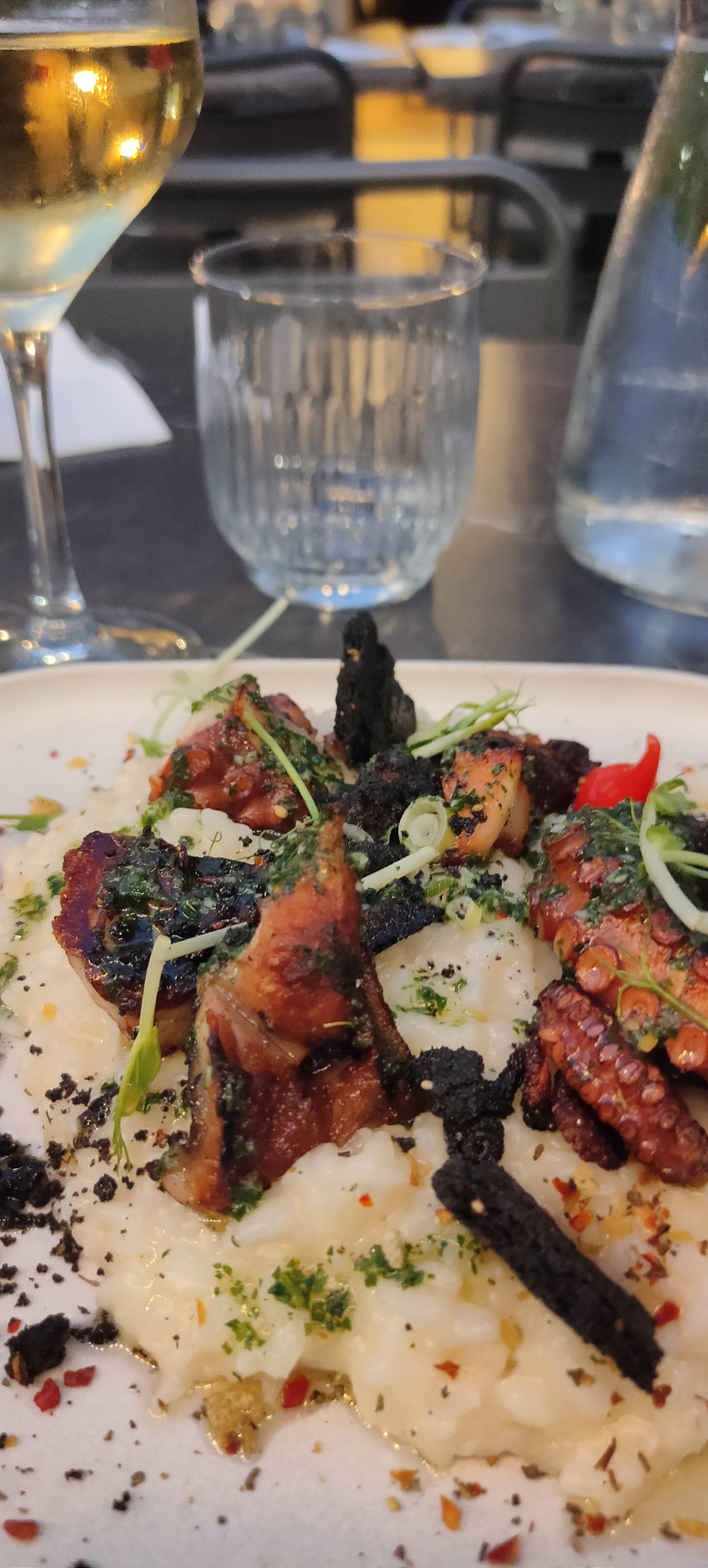 Très agréable dîner avec le poulpe le plus tendre que j’ai jamais mangé. Je recommande vivement ce lieu chic et raffiné à très bon prix !