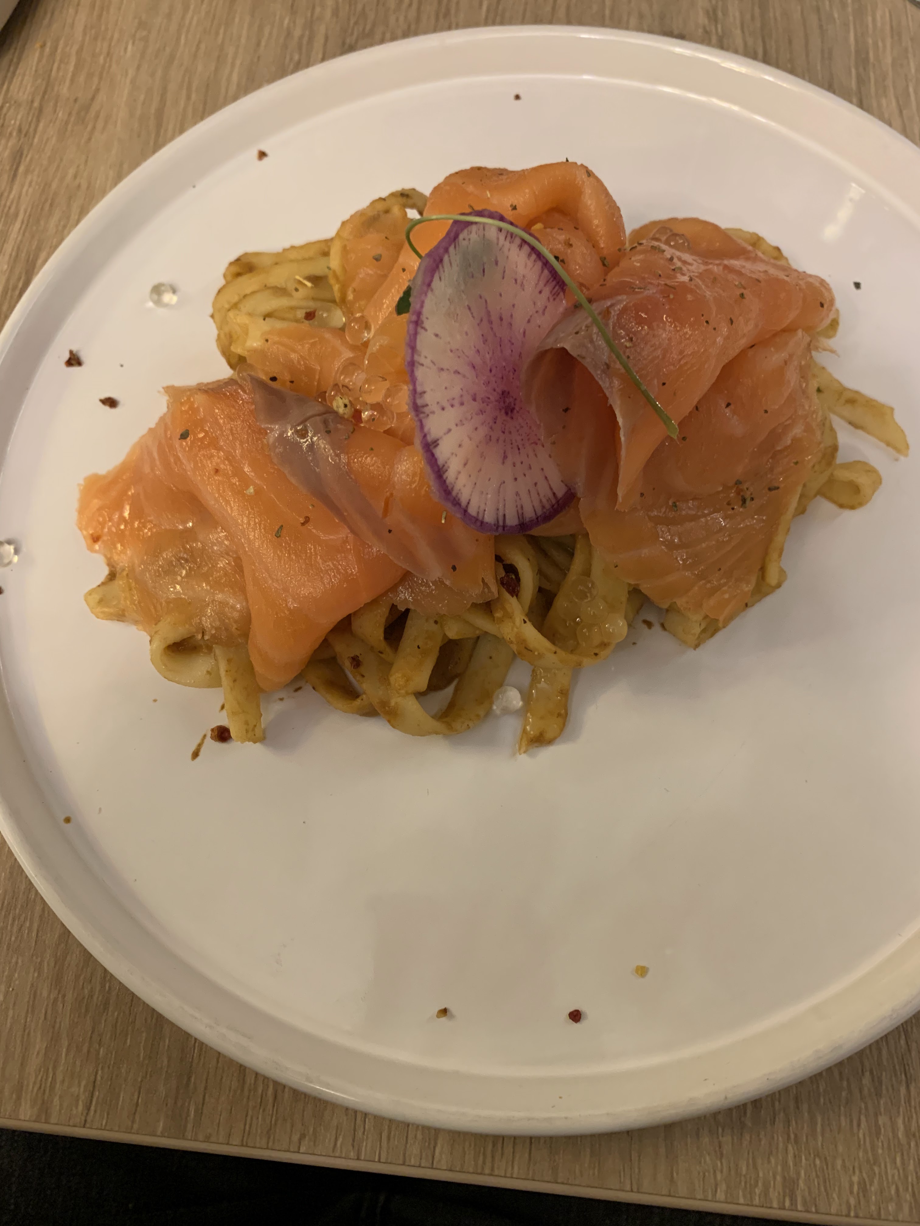 Venue en couple avec un bébé, nous avons pris un cocktail, un plat et dessert. Ce qui est très bien pour un restaurant et la qualité des produits. Serveuse agréable et bonne ambiance et lieu sympathique. Je vous recommande l'endroit.