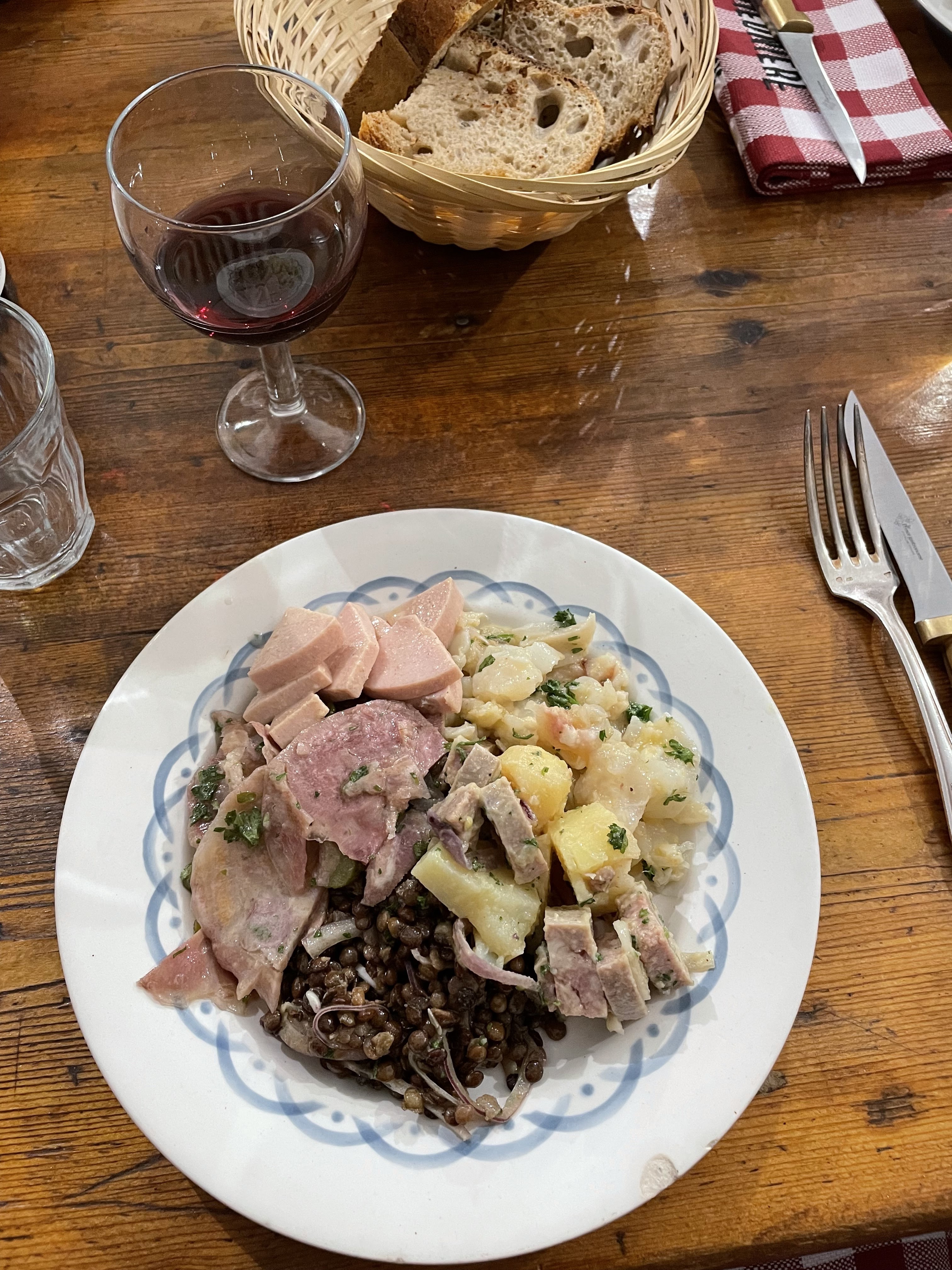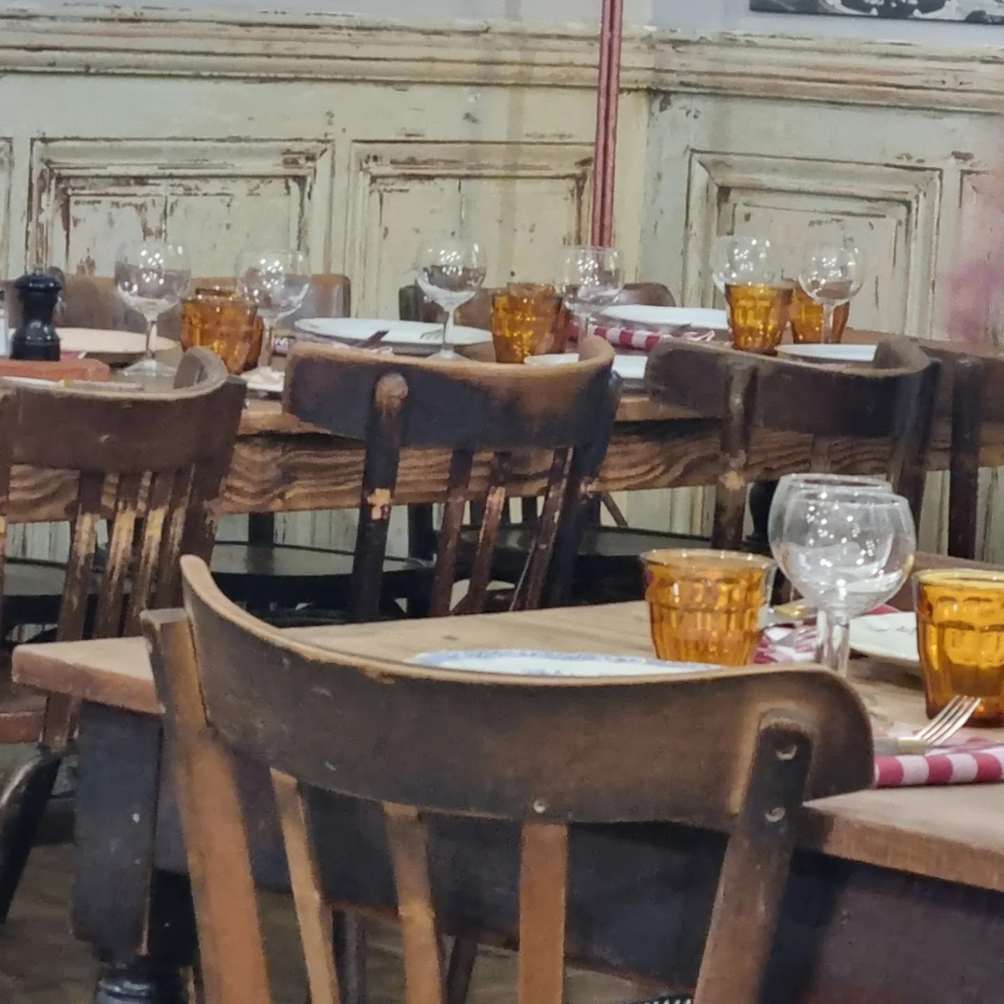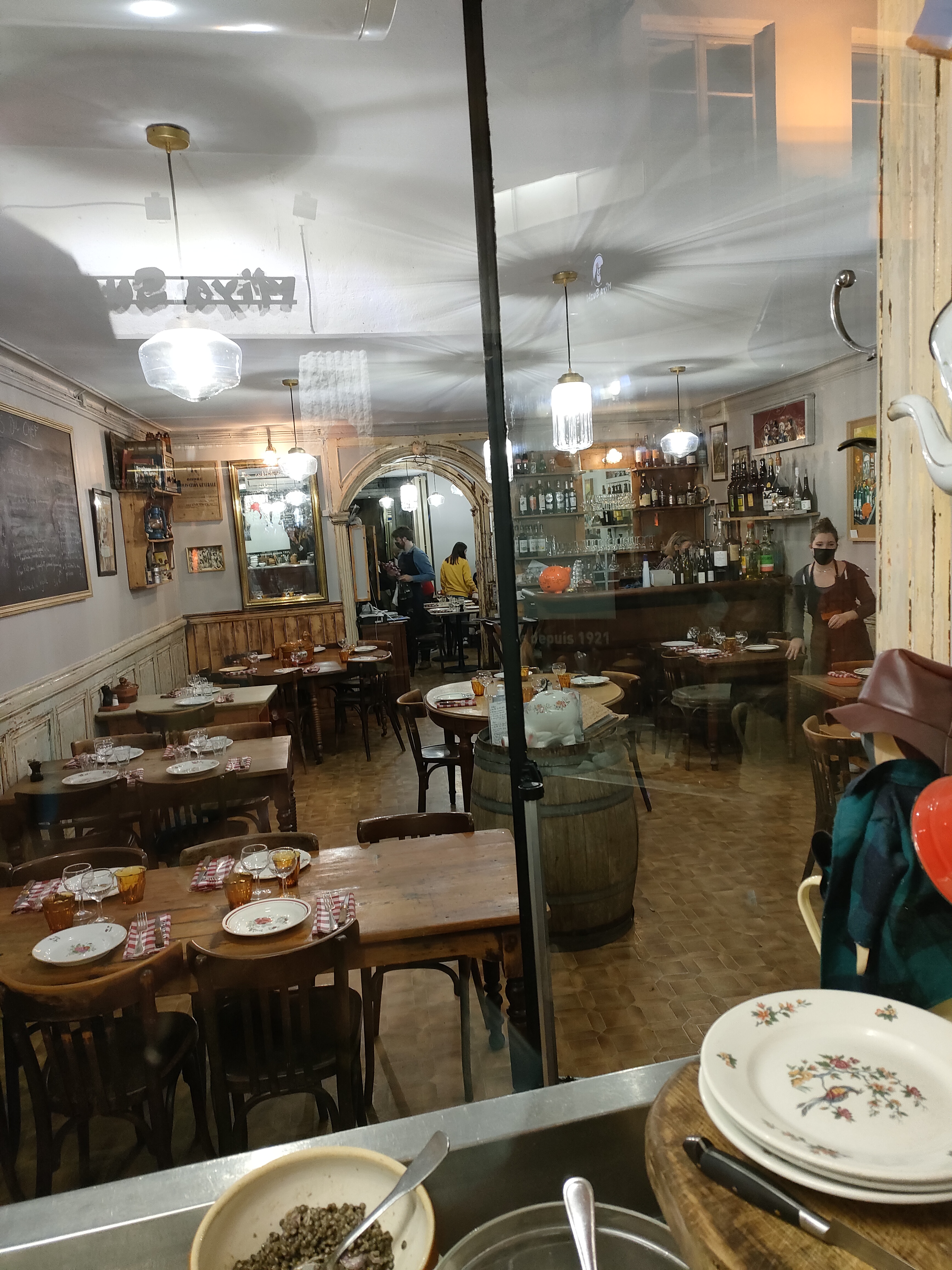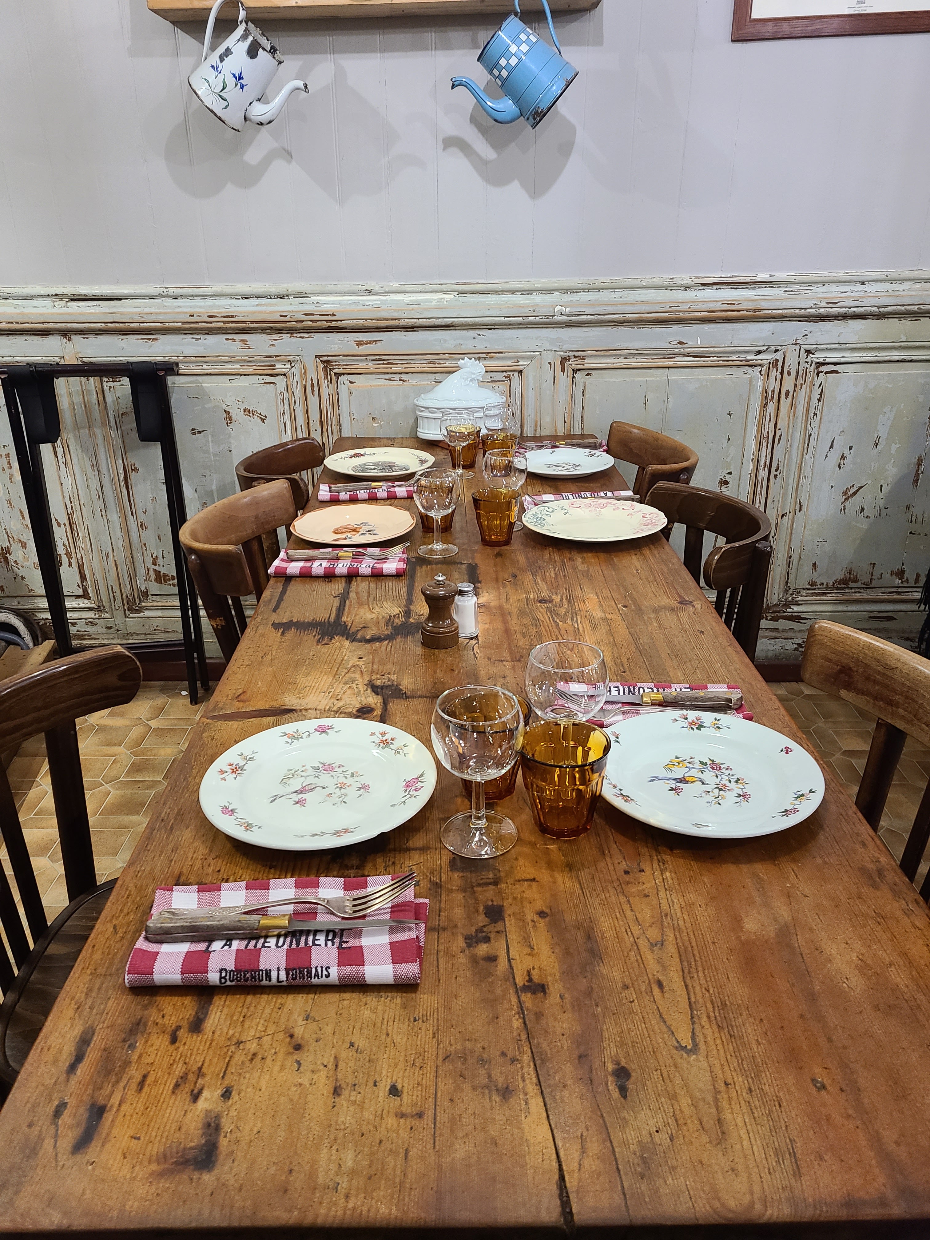 Un décor resté dans son jus comme on les aime pour un bouchon. Des assiettes vinted, des serviettes à carreaux rouges et blanc...des plats copieux et de qualité, servis dans la casserole ou le saladier. Bref, si vous cherchez un vrai bouchon allez-y