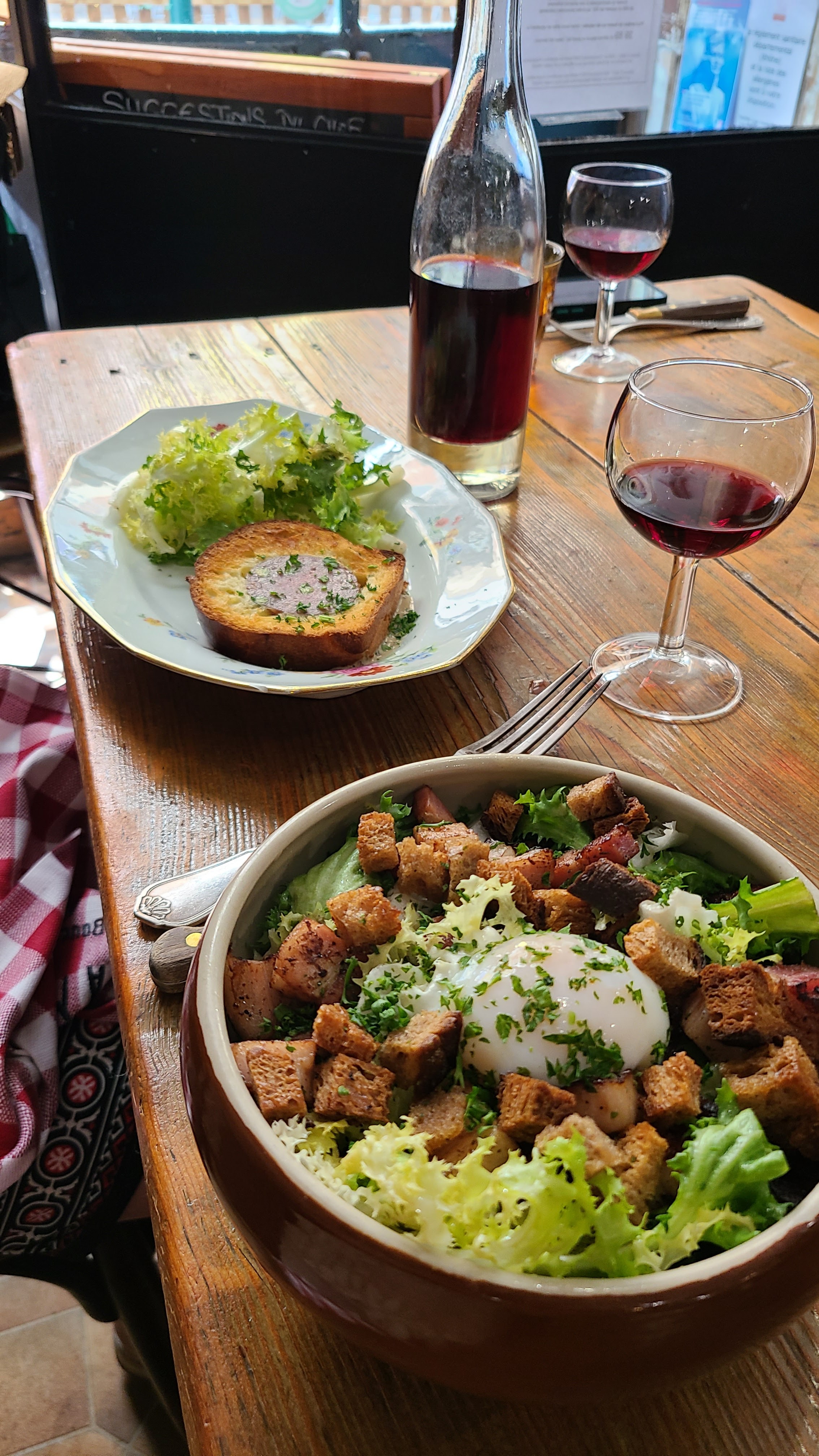 Je me suis régalé à découvrir les œufs pochés, sauce vin rouge et des lardons fondants! Et son andouillette avec ses pommes grenailles, un délice dans un cadre typique des bouchons lyonnais.