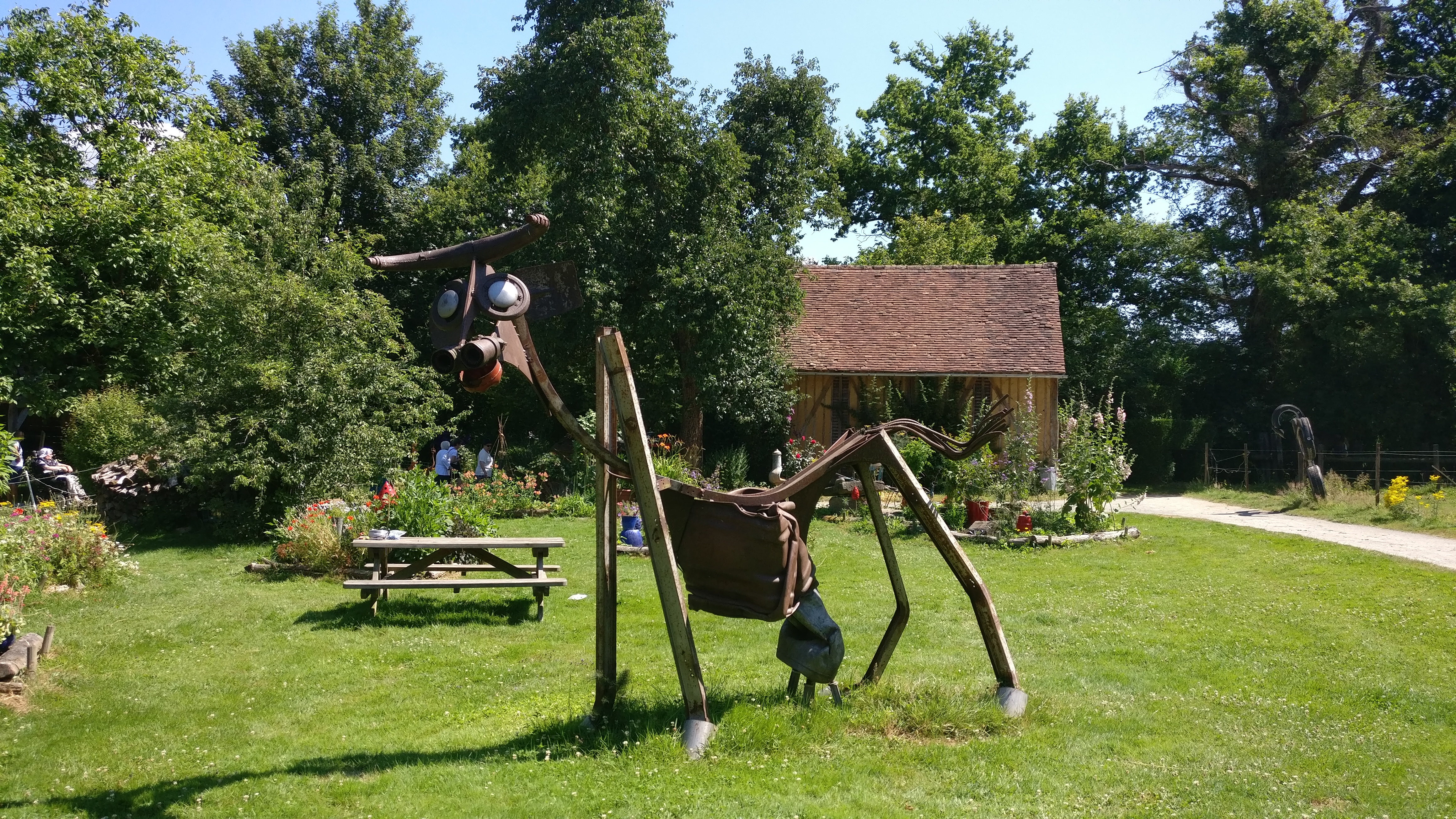 Très bel endroit dans la profonde campagne bien entretenue et fleurie, dépaysant, reposant, original avec toute cette deco et création artistique de vieux appareils, matériaux récupérés. Très bien accueillis. Déjeuner du terroir très bon. Découverte des différentes races des chevaux de trait et sur leur vie très intéressante, spectacle des chevaux superbes. Animaux en parfait état, chouchoutés. Félicitations à toute l équipe qui les dressent et les entourent. Bravo à tous.