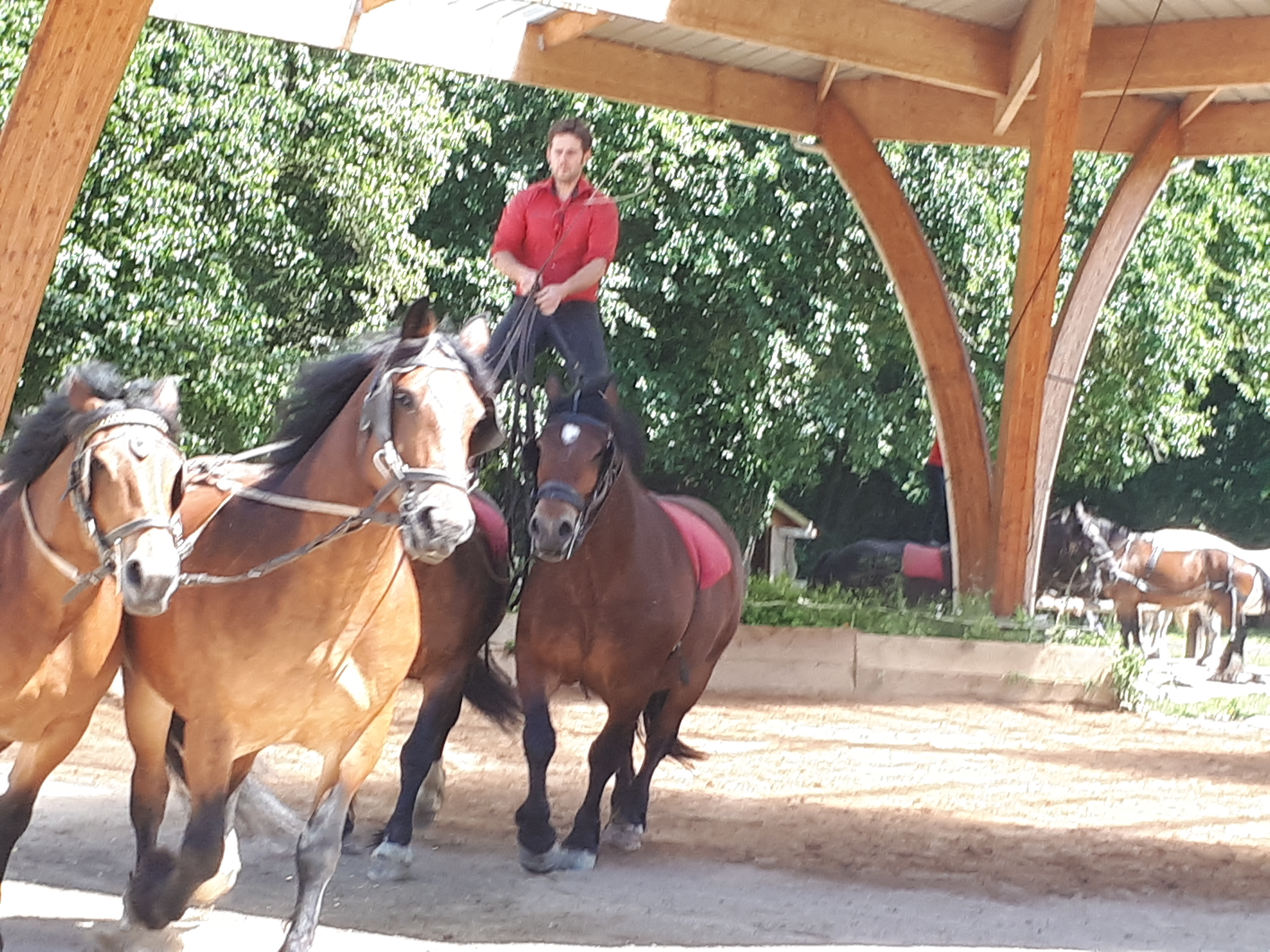 Une journée fabuleuse avec ces beaux chevaux qui accompagnèrent les hommes durant des millénaires. Merci à toute la super équipe qui tient tous les rôles (palefrenier, maréchal ferrant, service au restaurant, artistes du spectacle) avec bonne humeur et un sourire si sincère.