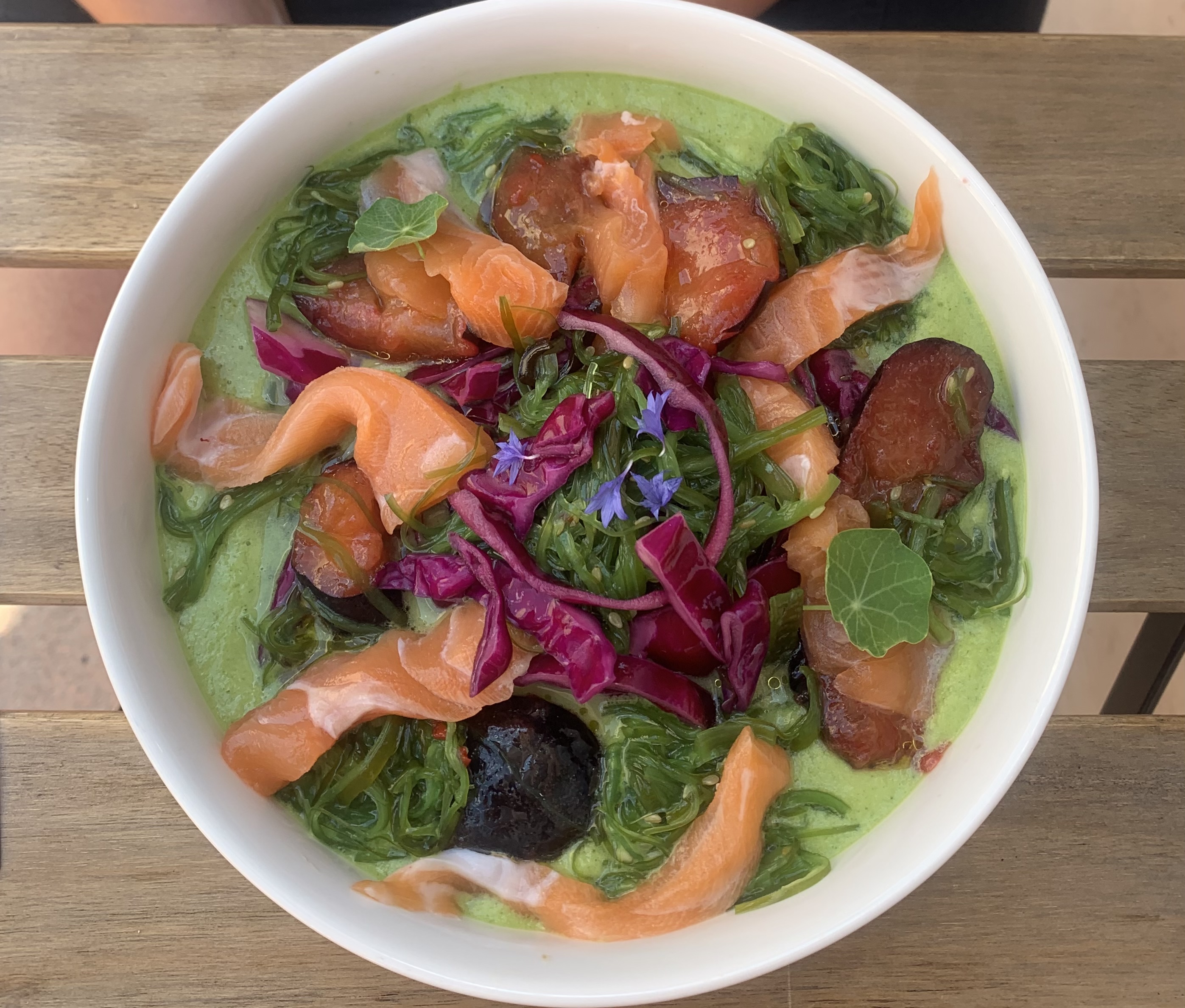 La perfection ! Tout est délicieux (aujourd'hui le bun fromage frais de chèvre et pesto d'ail des ours, mais quelle tuerie !!) Et l'accueil est au RDV, avec un brin de soleil sur la terrasse et au coin du sourire, on adore 😍