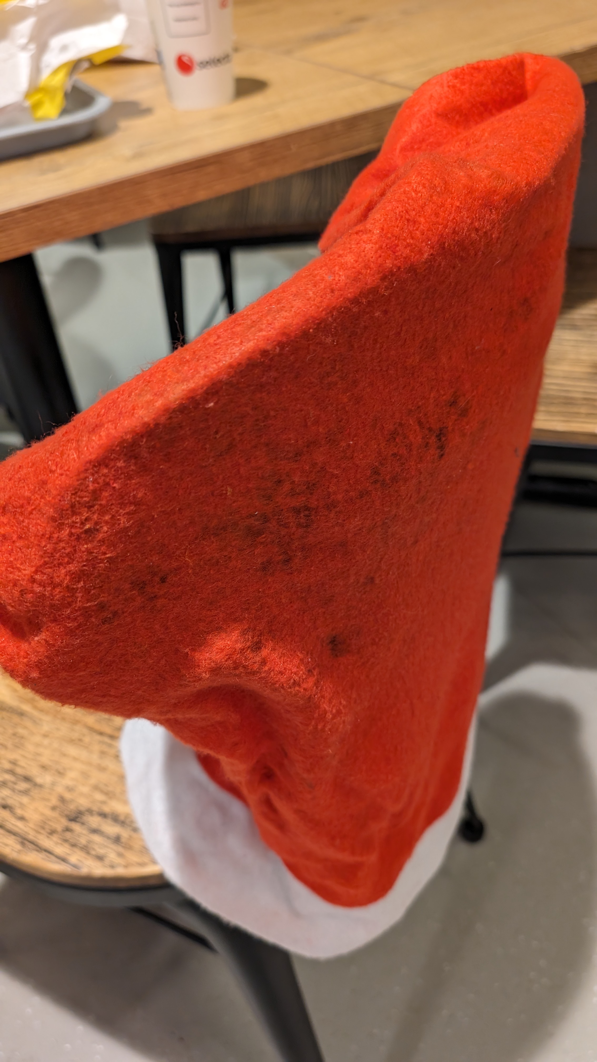 Venu à l'aube un dimanche, ambiance de folie à La Mie Câline avec l'employée qui met sa propre enceinte connectée en plus de celle de la station 🤣 Dommage qu'elle ait cramé le panini, et qu'elle ne mette pas de charlotte lorsqu'elle prépare du snacking... Les petits bonnets de Noël sur les chaises, c'est sympa, mais ils sont clairement crades !? 😠😮💨 Bon... Je regrette un peu mon arrêt ici 😑