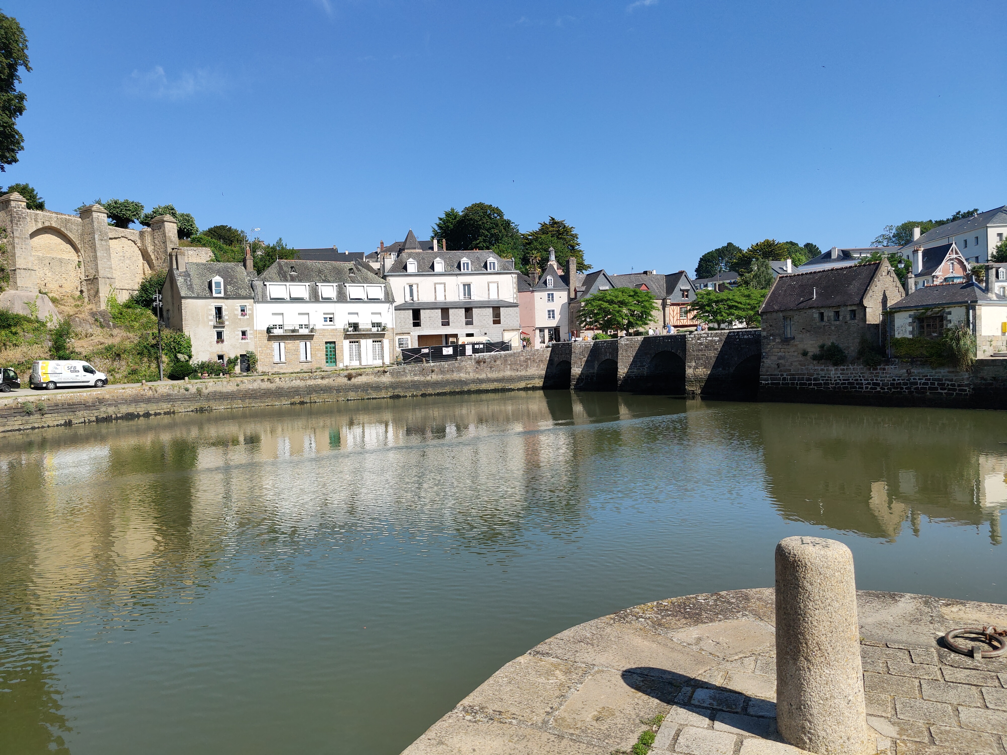 Une bouée de sauvetage dans un océan vide = Ce fût une divine surprise, en ce 1er dimanche de septembre, de trouver un établissement ouvert (hormis à St Goustan) pour déjeuner léger. Il faut dire que les clients automobilistes ayant les plus grandes peines du monde pour se garer en Centre-ville, sont partis ailleurs. Quoiqu'il en soit, il reste au moins un lieu de vie dans cet univers minéral ouvert tous les jours de 7h à 20h. Et il est génial !