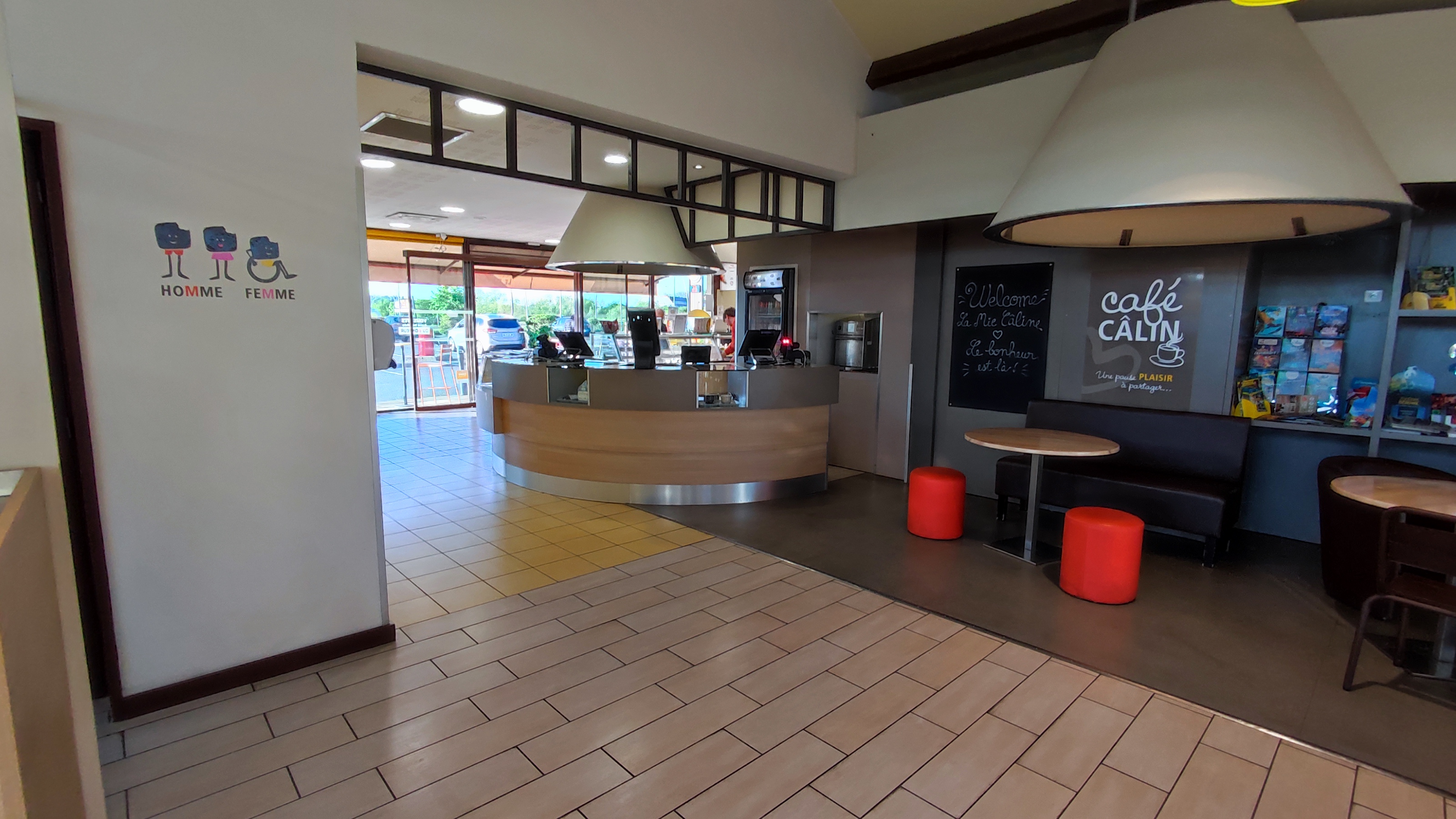 Ouvert toute la journée, dispose du Wi-Fi et d'un espace télé pour les enfants, pas très cher : idéal pour une pause en cours de route
