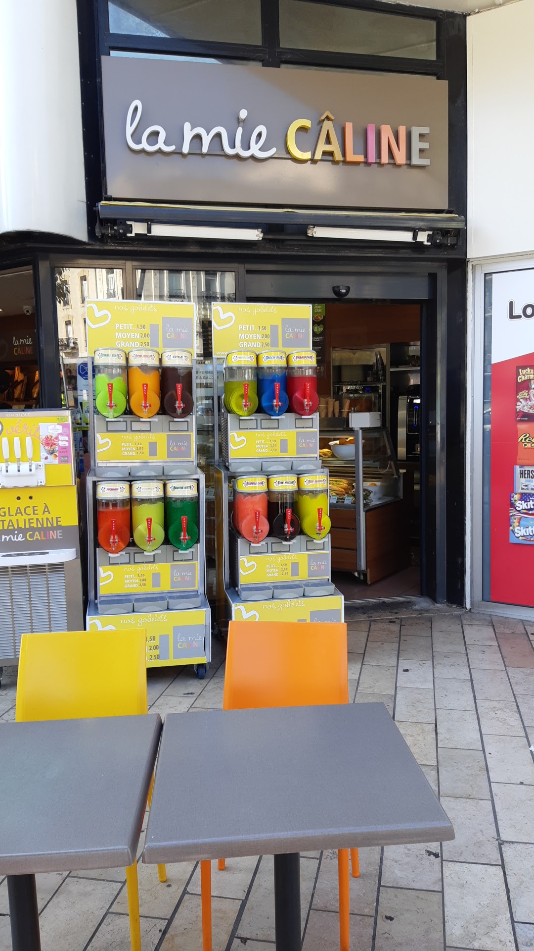 Bien qu'il s'agisse d'une chaîne de boulangerie, cette Mie Caline n'est pas particulièrement accueillante. Les produits sont vraiment très peu cuits et l'hygiène reste douteuse (beaucoup de mouches, sol qui colle, tables sales...)
