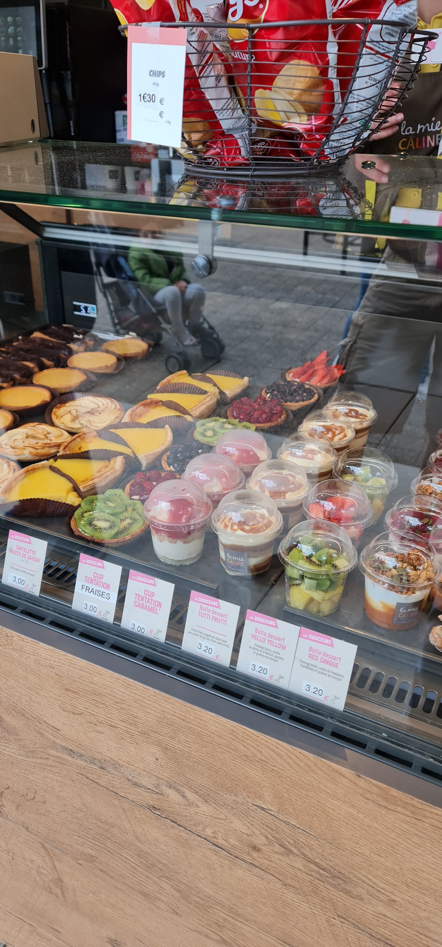 Heu, franchement..... Je suis client habituel et fidèle de la Mie Câline et là... Personnel antipathique sauf une personne (sur trois ou quatres). Deux mouches mortes se trouvaient autour des cookies et d'autres vivantes volaient tranquillement au dessus des differents gateaux. Malgré ma remarque, aucune réponse de la part de l'employé. On ne m'a même pas proposé de faire chauffer mon ciabatta alors que je prends le même ailleurs et l'on m'a toujours demandé. Bref, à éviter à tout prix.