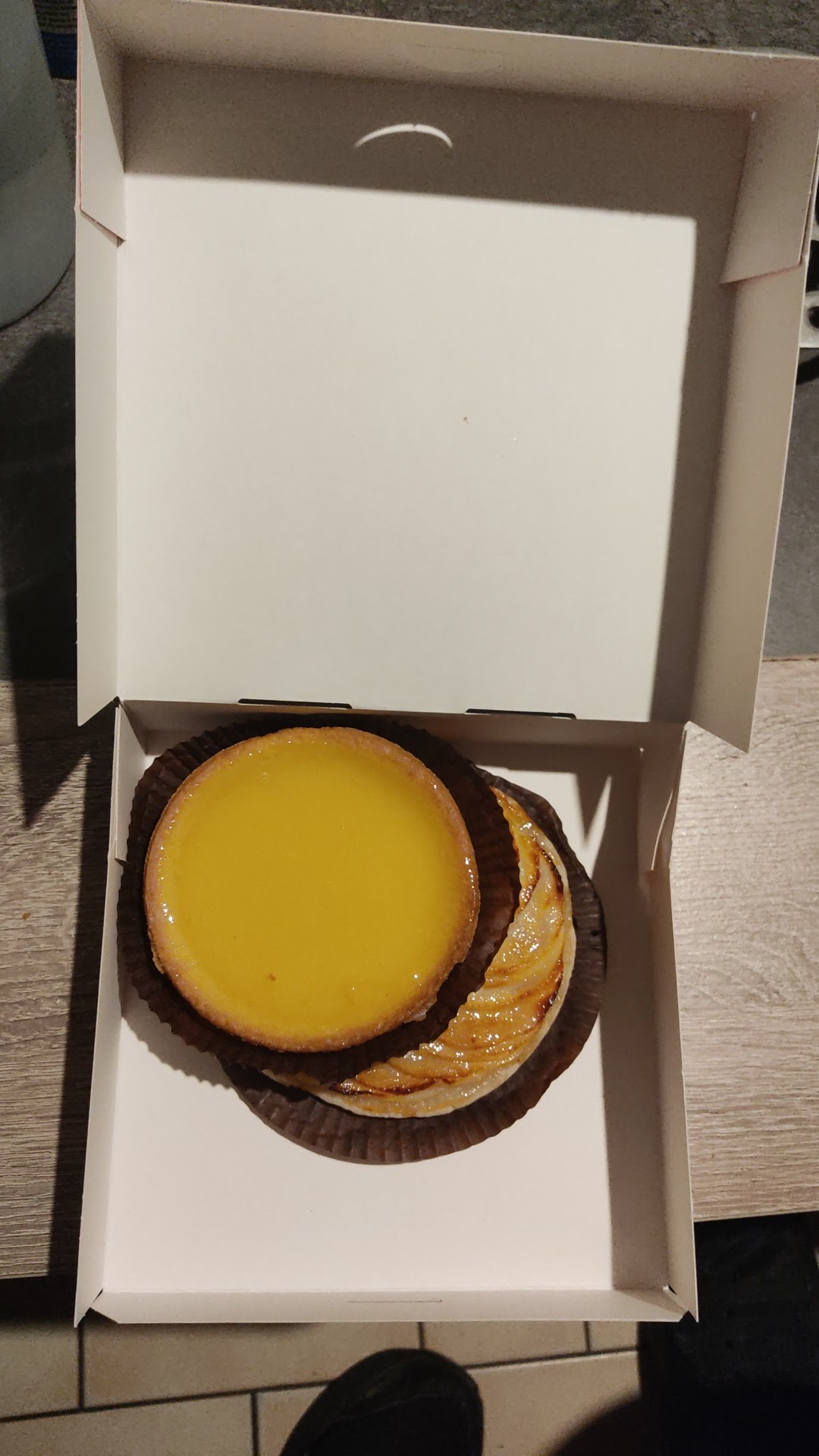 Pâtisseries rangées l une sur l autre dans la boîte... Quelle surprise en ouvrant la boîte. De plus j' avais demandé une tartelette au citron meringuée. La prochaine fois j' irai dans une vraie pâtisserie.