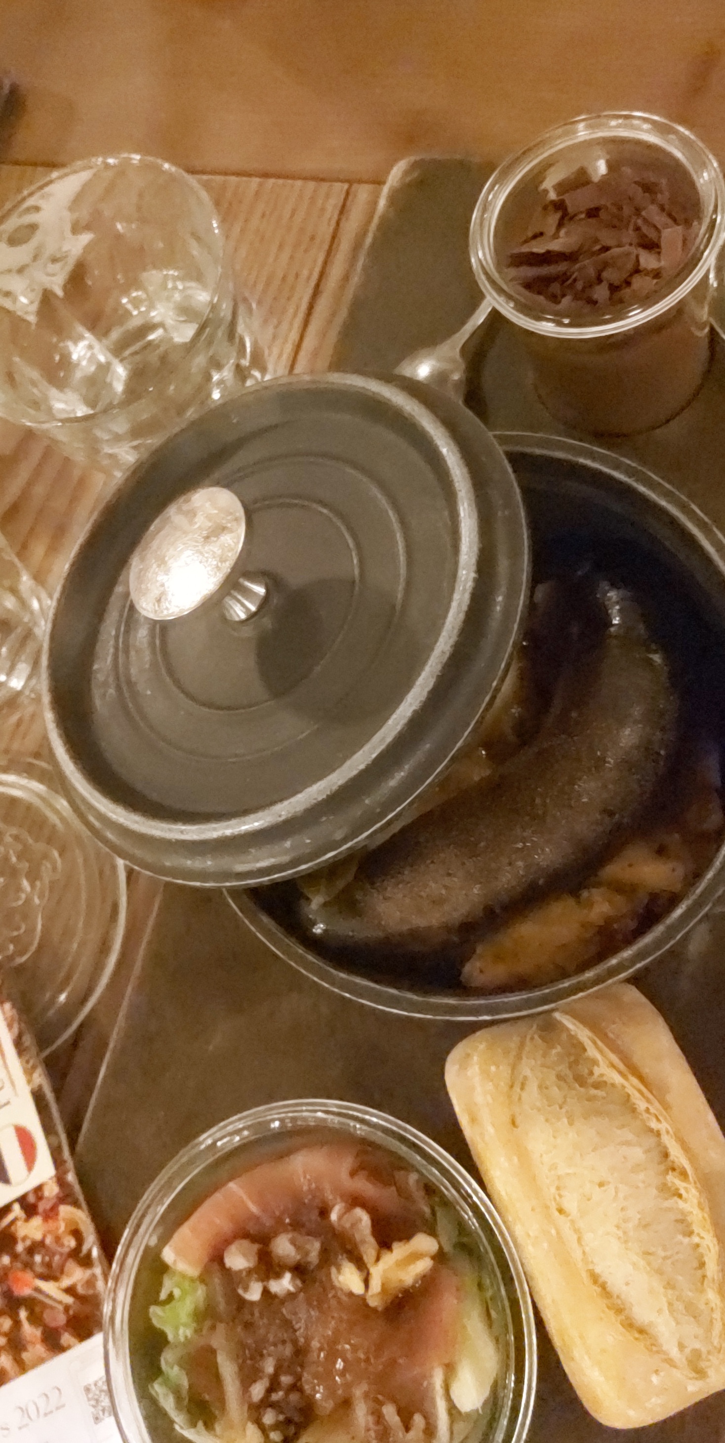 Buffet que l'on cherche et que l'on met sur une planche, une verrine d'entrée, une marmite du plat et une verrine de dessert, génial. Et le décor du restaurant est aussi très chouette, avec des serveuses et serveurs en costume top👍.