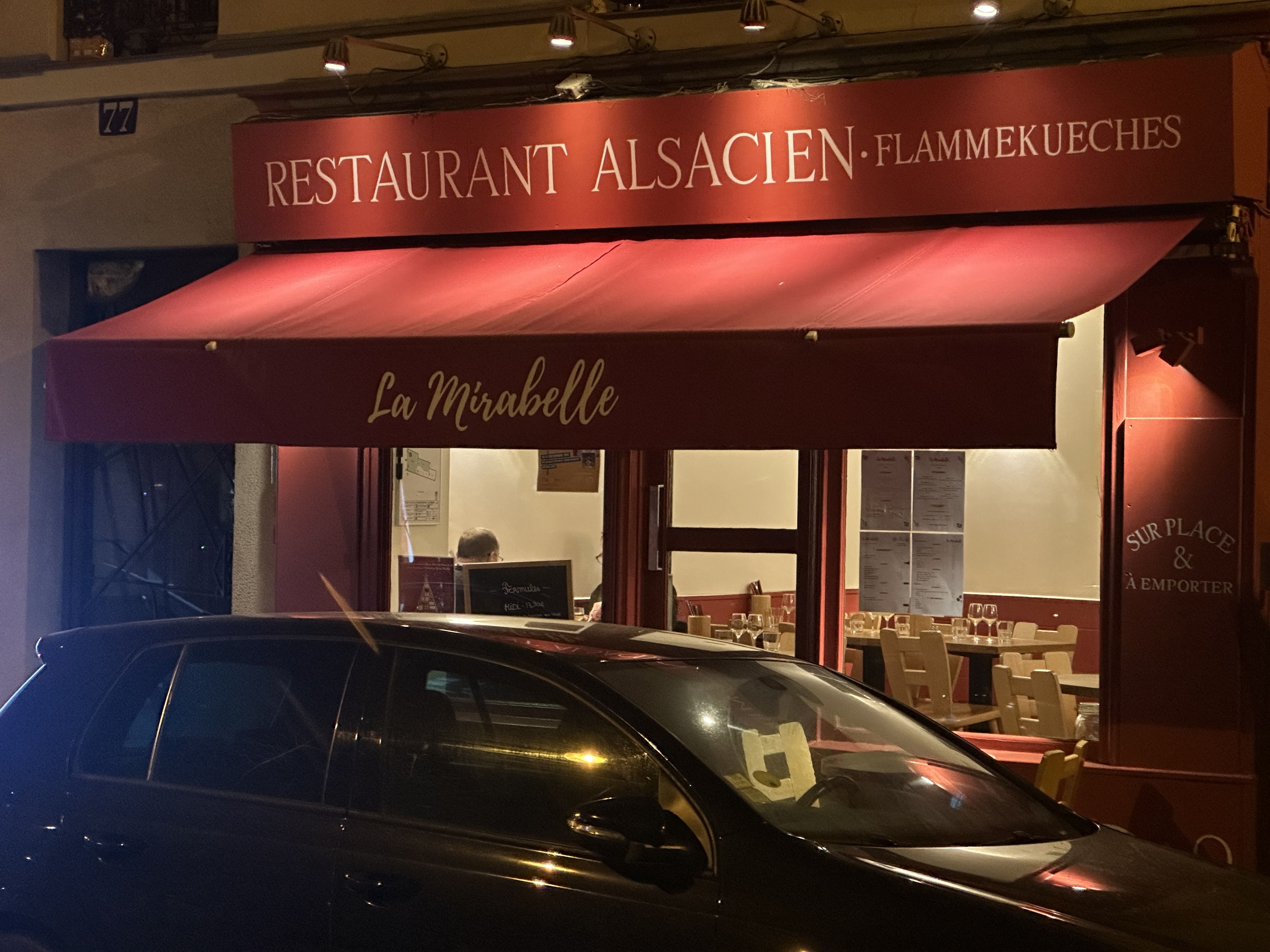 Probablement il reste peu d’endroits et de restaurants comme La Mirabelle à Paris où la bonne cuisine traditionnelle de qualité est accompagnée d’un accueil chaleureux qui favorise une ambiance conviviale et de partage et cela à un prix très abordable. On a été 9 ami.e.s à midi et c’est Simon, le chef, qui nous a fait découvrir et déguster les différentes tartes alsaciennes flambées à partager, ainsi qu’un excellent bon vin. C’était tout simplement succulent et délicieux. Une expérience à vivre absolument en famille et/ou entre ami.e.s ! Merci Simon !
