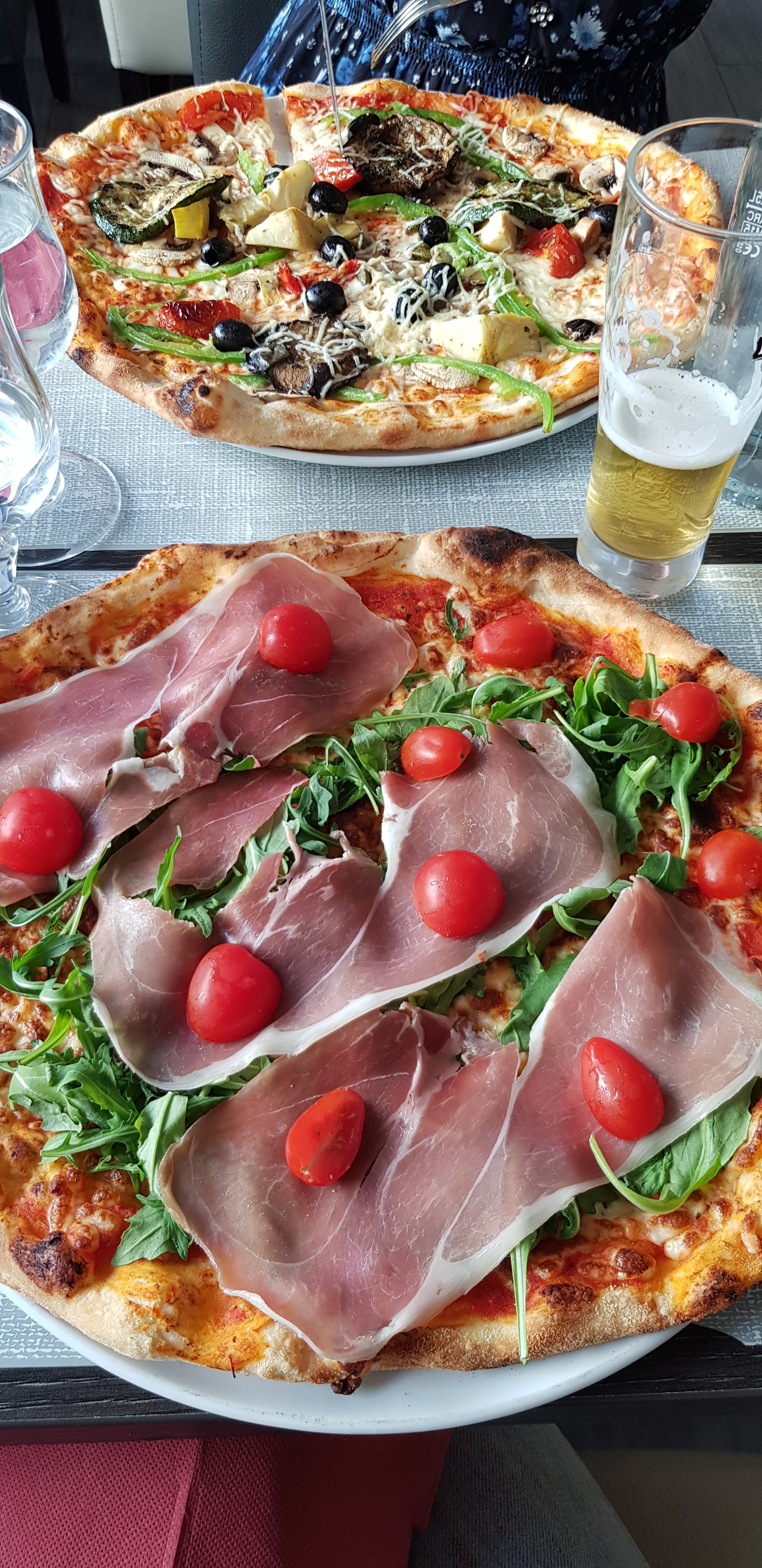 Nous y sommes allé hier en famille ma femme et ma fille de 3 ans. J'ai pris une pizza monna lucia. Photo ci joint. Bien garnie pâte fraîche. Oeuf bien cuit (c'est rare qu'ils ne soient pas baveux et la c'était parfait) Ma femme a prit des lasagnes. Avis plutôt négatif sur ce plat mais c'est une affaire de goût. Le plat était bien préparé et copieux mais la sauce pas assez épaisse à notre goût et il aurait fallut plus de tranches de pâte. Pour la petite c'était menu enfant. Belle pièces de poulet bien cuite et pas grasses. Frites en quantité et un peu de verdure. En dessert un tiramisu speculos très copieux et délicieux. Je joint les prix de la carte et les photos des plats. Pour conclure le prix un peu trop élevé à mon goût coûte la 5 ème étoile. Le personnel est acceuillant et à l'écoute. Le cadre est très sympa. Moderne et le mobilier est de bonne qualité.