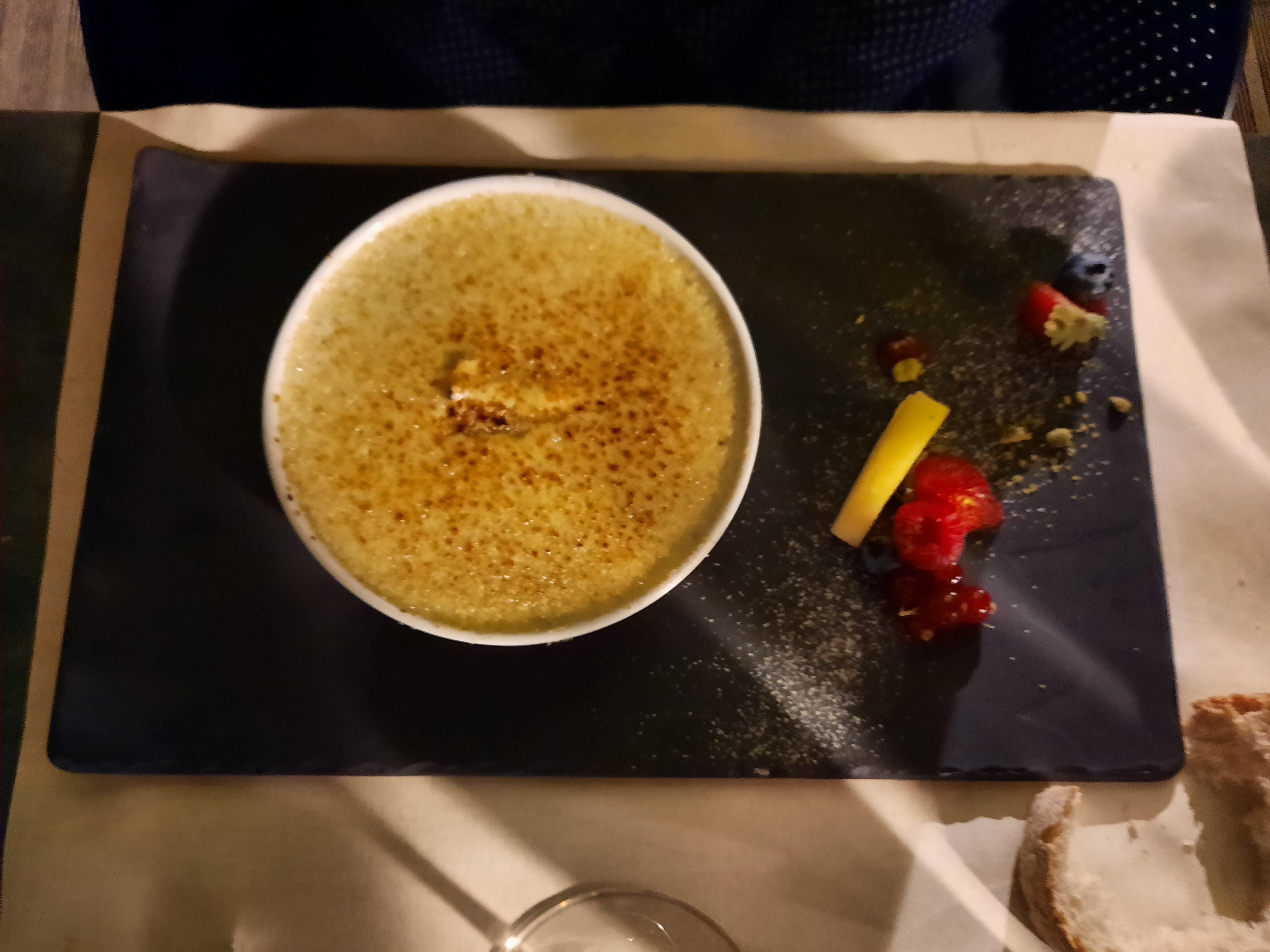 Plutôt déçu dans l'ensemble. Menu à 40€ avec une entrée de 9 escargots à la persillade (très bon il faut le dire), suprême de volaille dont la viande était très sèche. Je le signale mais aucun retour de la serveuse ni de la cuisine. Un fromage blanc (ça c'est dur à rater) et une crème brulée enfin un genre de crème brulée devrais-je dire. Texture mousseuse à température ambiante avec en cadeau un cheveux à l'intérieur (je n'ai donc pas fini ce ''truc''). La encore je signale à la serveuse et aucun retour ni d'elle ni de la cuisine. Pas même une proposition de remplacement, d'excuses ou de geste commercial. Dessert vendu à la carte à 12€ quand même! Nous n'y retournerons pas