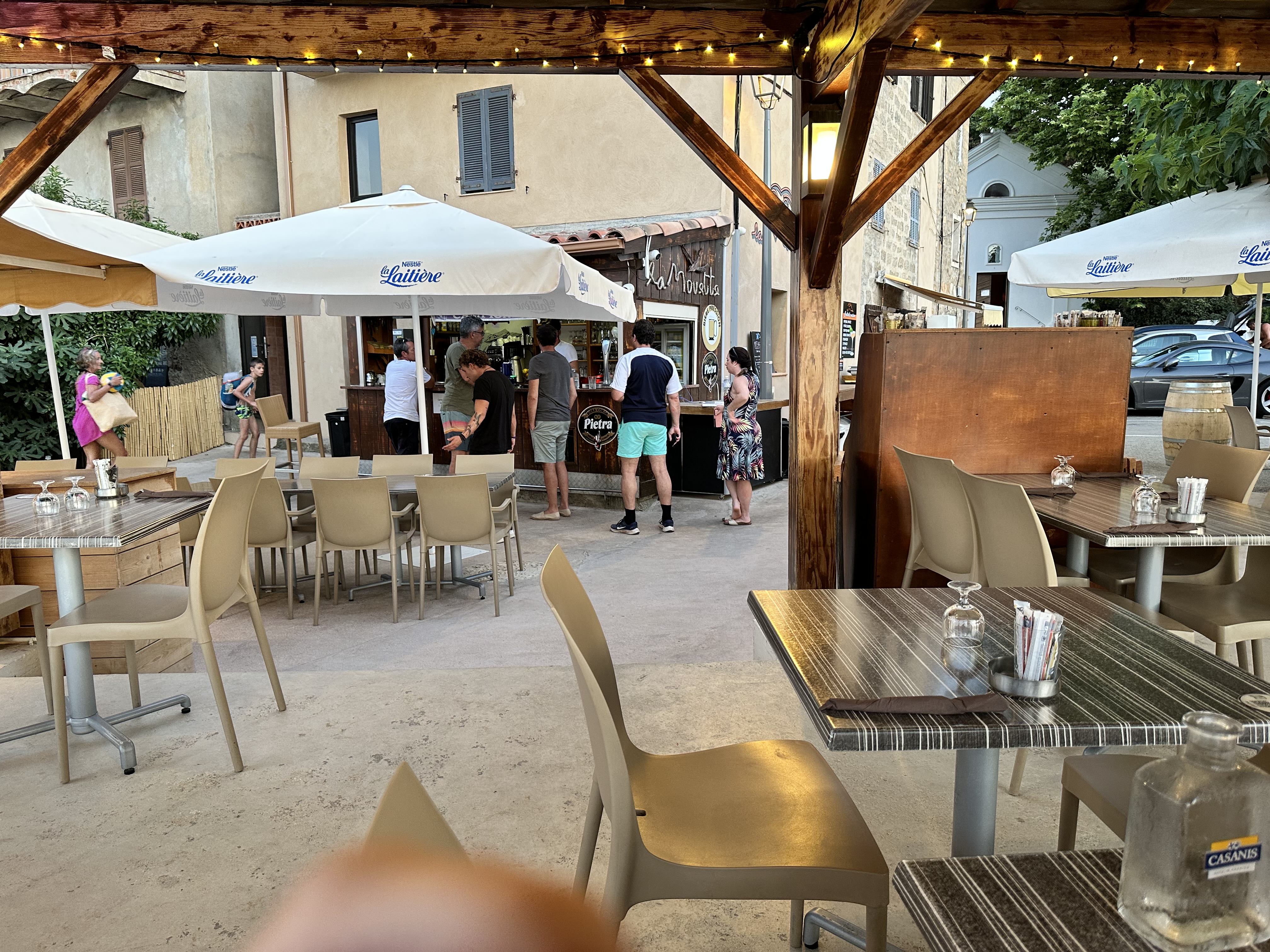 Terrasse agréable pour boire un verre après un aller retour vers le belvédère. Histoire de se réhydrater un peu. Une pietra ambrée et ca repart.