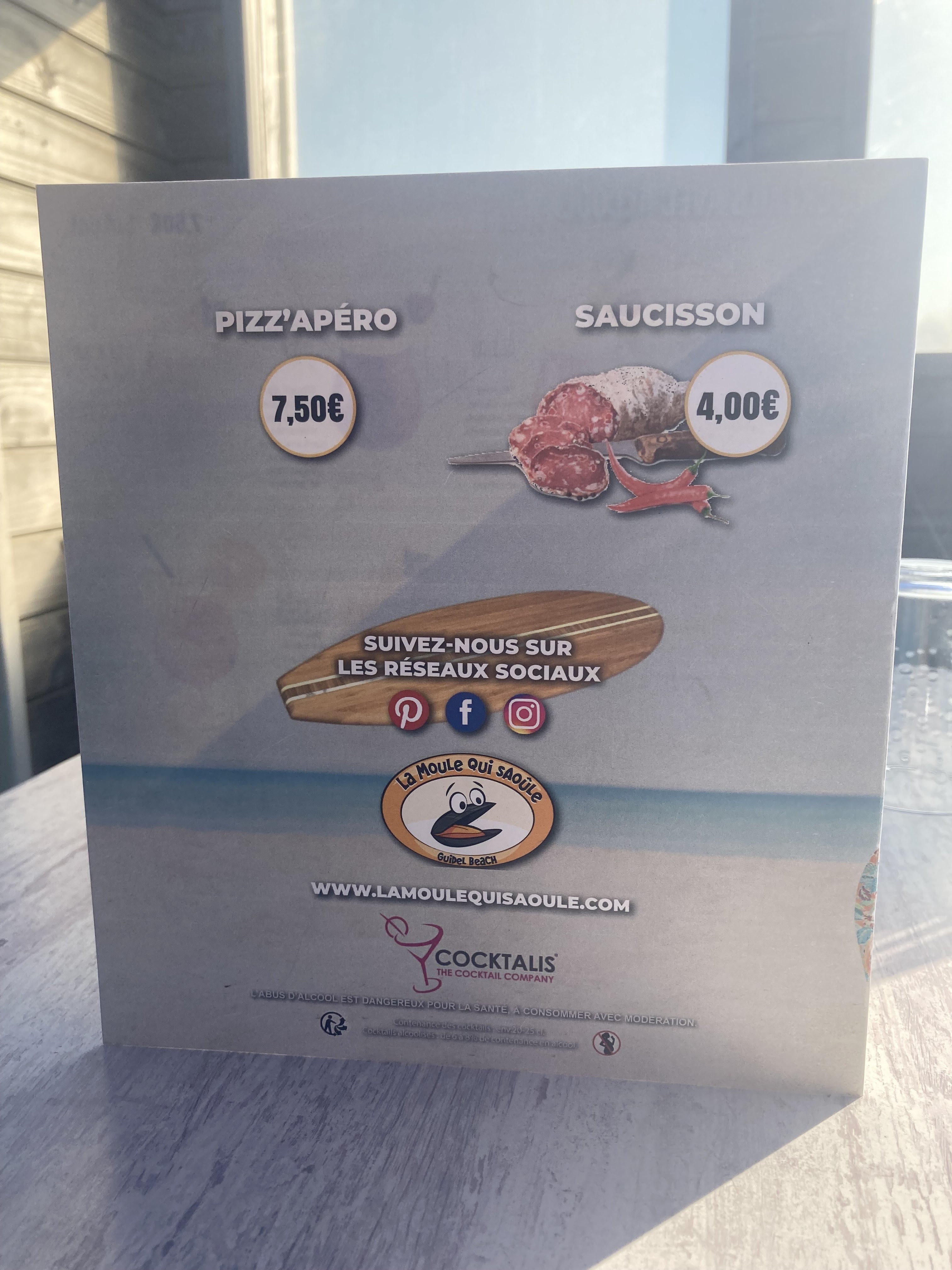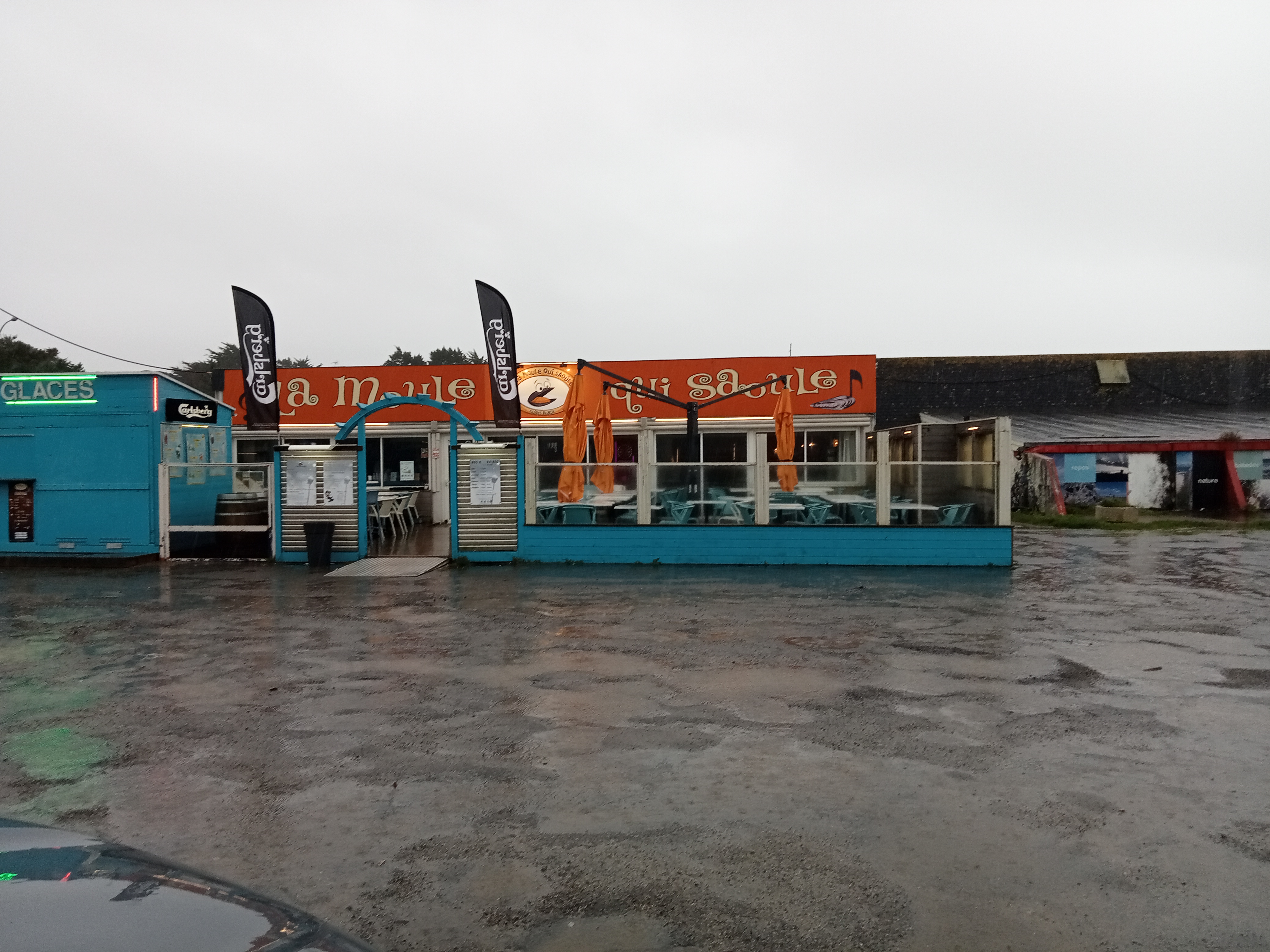En visite dans la région, nous avons eu la chance de pouvoir aller nous restaurer à La Moule qui Saoule. Nous n'avions pas réservé mais pour notre plus grand bonheur une table au soleil et à l'abri du vent allait se libérer, il fallait juste patienter 10-15min. Le temps pour notre fille de faire un tour à l'air de jeux qui était à proximité. Après de longs mois sans restaurant, nous nous sommes fait plaisir et vu que les plats étaient copieux, nous avons bien mangé ! L'équipe est chaleureuse, professionnelle et très attentionnée. Le cadre est vraiment agréable, nous avions le soleil, la vue sur la mer et les petits moineaux. L'établissement est très propre, bien entretenu et les distanciations respectées à la lettre. Il y a un parking pour la clientèle mais également un dédié pour 7 camping-car. Le sanitaire femme dispose d'une table à langer pour changer un bébé et est assez grand pour une personne à mobilité réduite en fauteuil roulant... ce qui est plutôt rare pour un restaurant de plage, bravo à eux! Nous avons passé un agréable moment et nous reviendrons y manger avec plaisir.
