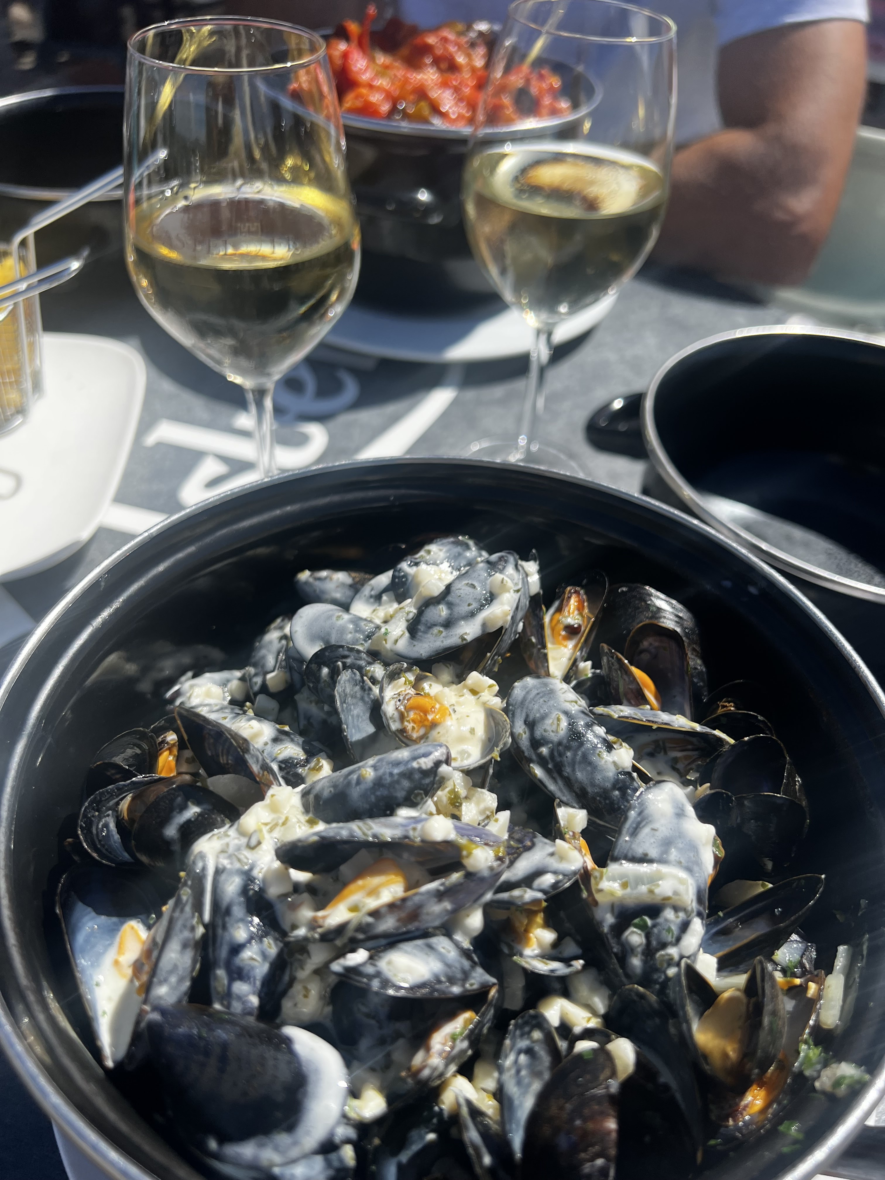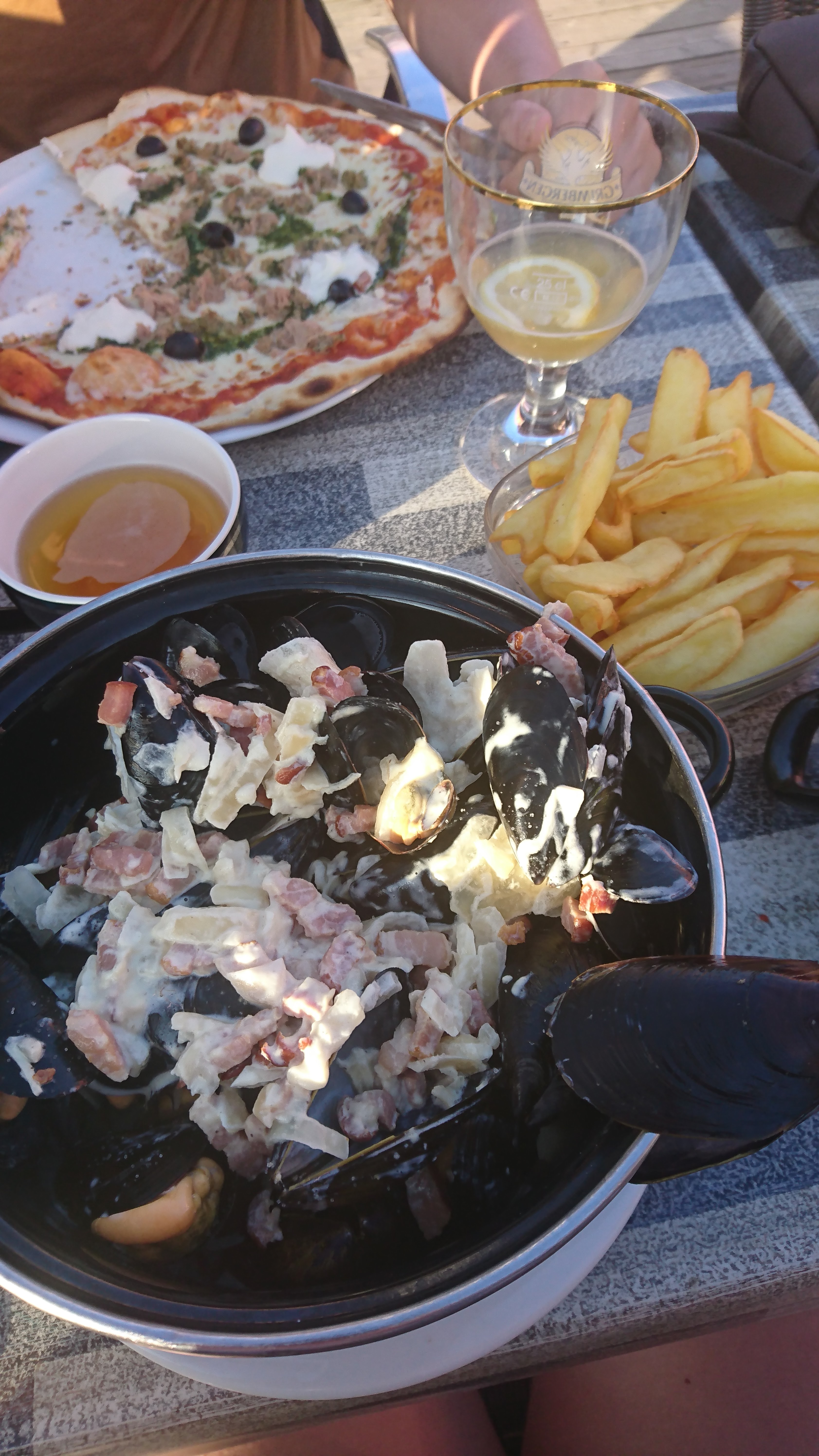 Je recommande !! De supers serveurs !! Et on y mange très bien. A savoir qu'il y en a pour tout les goûts. (Pizza, burger..) et bien sûr plusieurs choix de moules !!!! Top