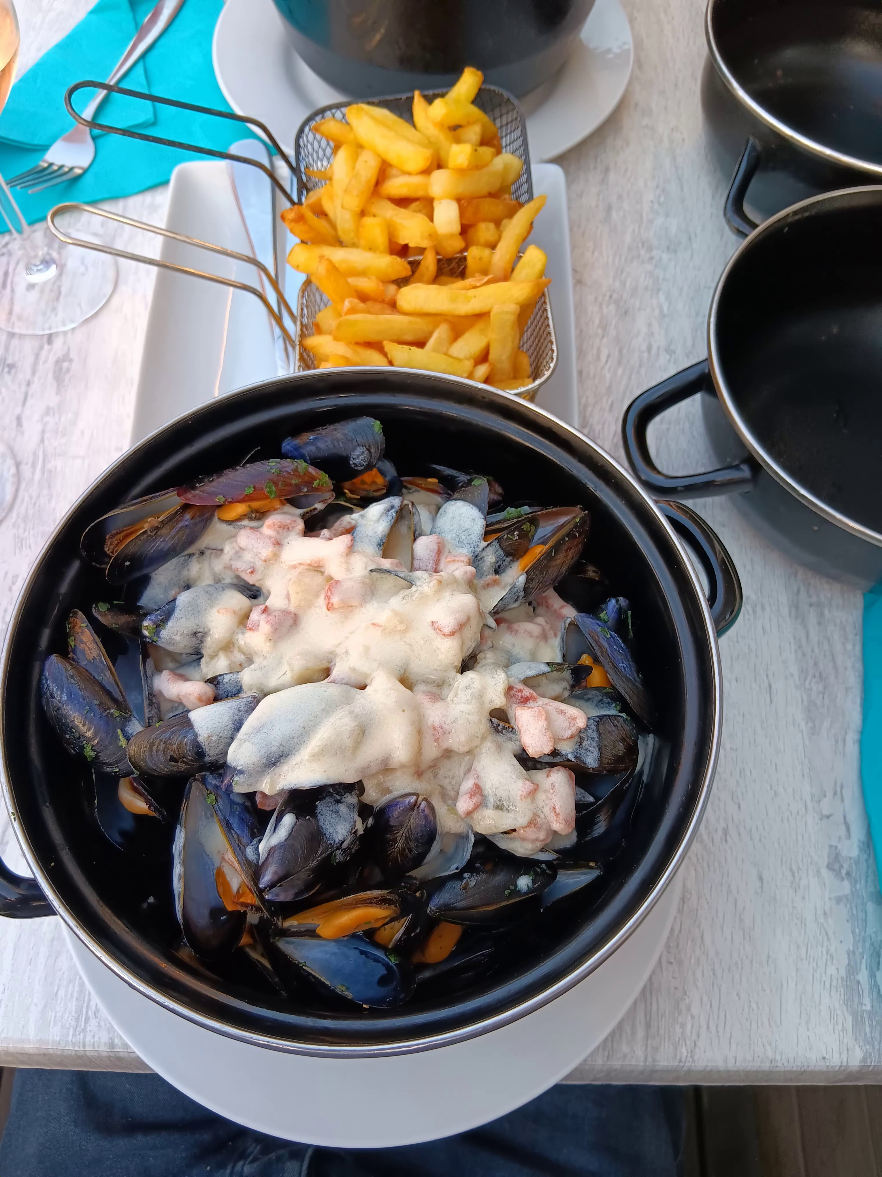 Nous avons été ravis de la qualité de l'accueil et des plats, même si nous étions déçus de ne pas avoir de moules à 12h30 ! Mais nous accusons le coup et mettons cela sur le dos du COVID qui fait que les stocks devaient être moins élevés que d'habitude. Cependant le gérant nous a gentiment offert une petite marmite de moules pour s'excuser et cela nous a fait plaisir ! Le rapport qualité prix est vraiment top, nous reviendrons et conseillons cette sympathique boutique 😁