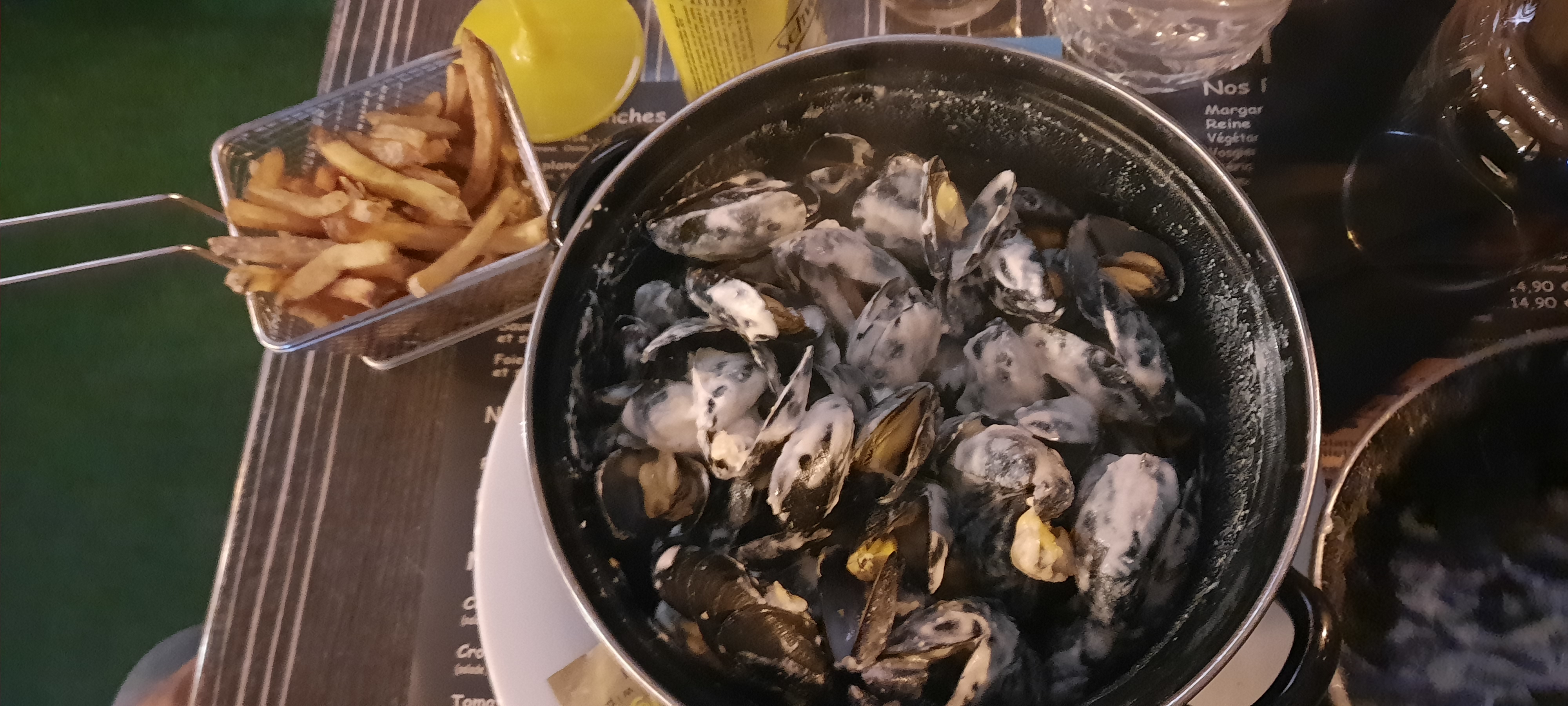 Les moules sont excellente! J'ai prie au roquefort et elle etait super bonne mon conjoint curry il a adorée ! service de qualité pas d'attente malgré que je suis venu sur la semaine du 15aout ! Stationnement pas tres loin et facile d'acces nous avons pus manger à 4 tranquillement mes 2 autre invités eux on eu un avis différent du miens concernant les moule marinière qui a leur goût n'était pas assez relever Frite maison super bonne également Un poil cher sur certaine chose Mais pour moi j'ai rien à redire c'était parfait les gamelle était bien garnis de 800grs environ je reviendrais très prochainement