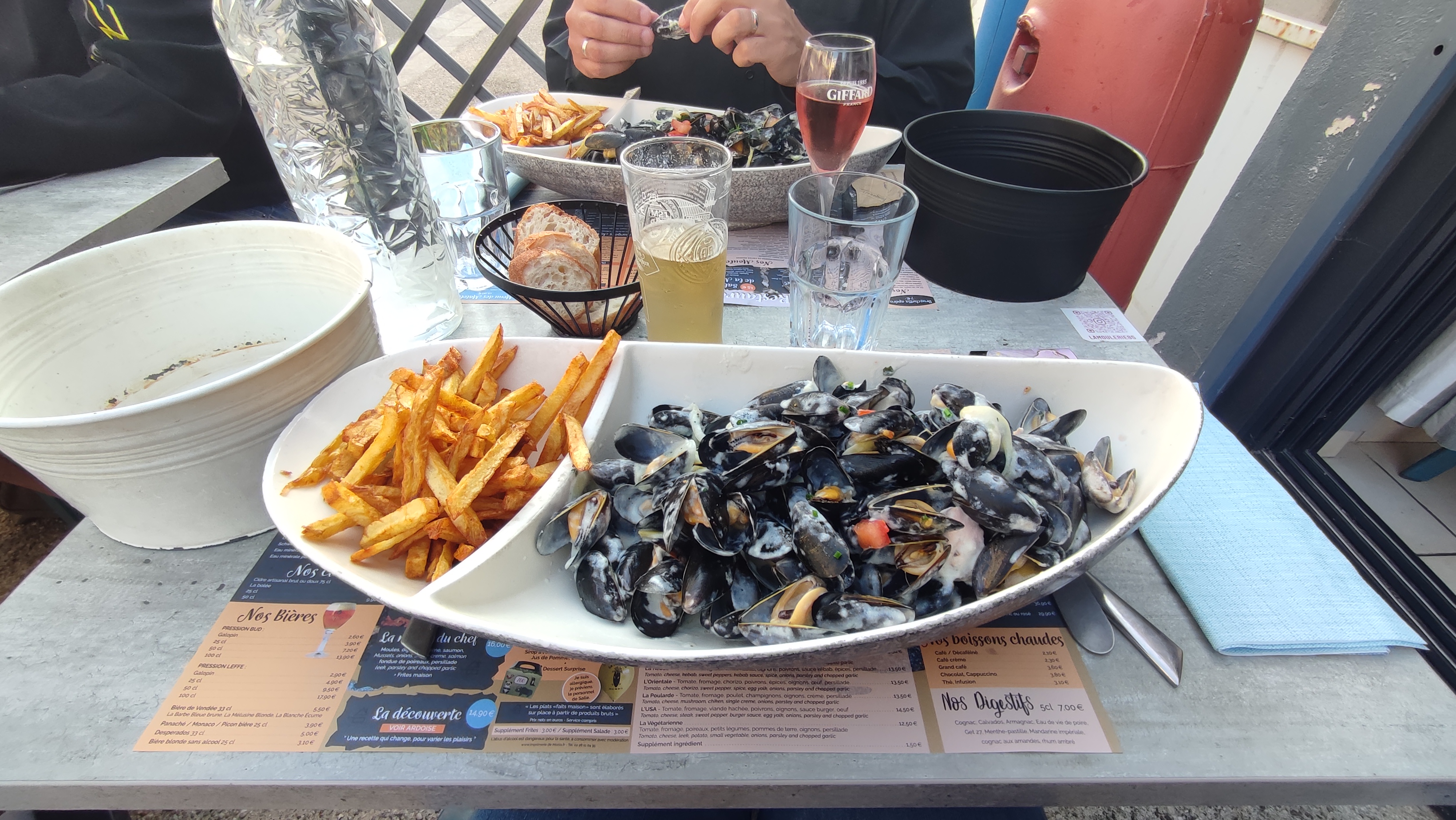 Restaurant très sympa,les moules au top. Venu a l arrivée d une semaine de vacances.on y retourne avant notre départ.