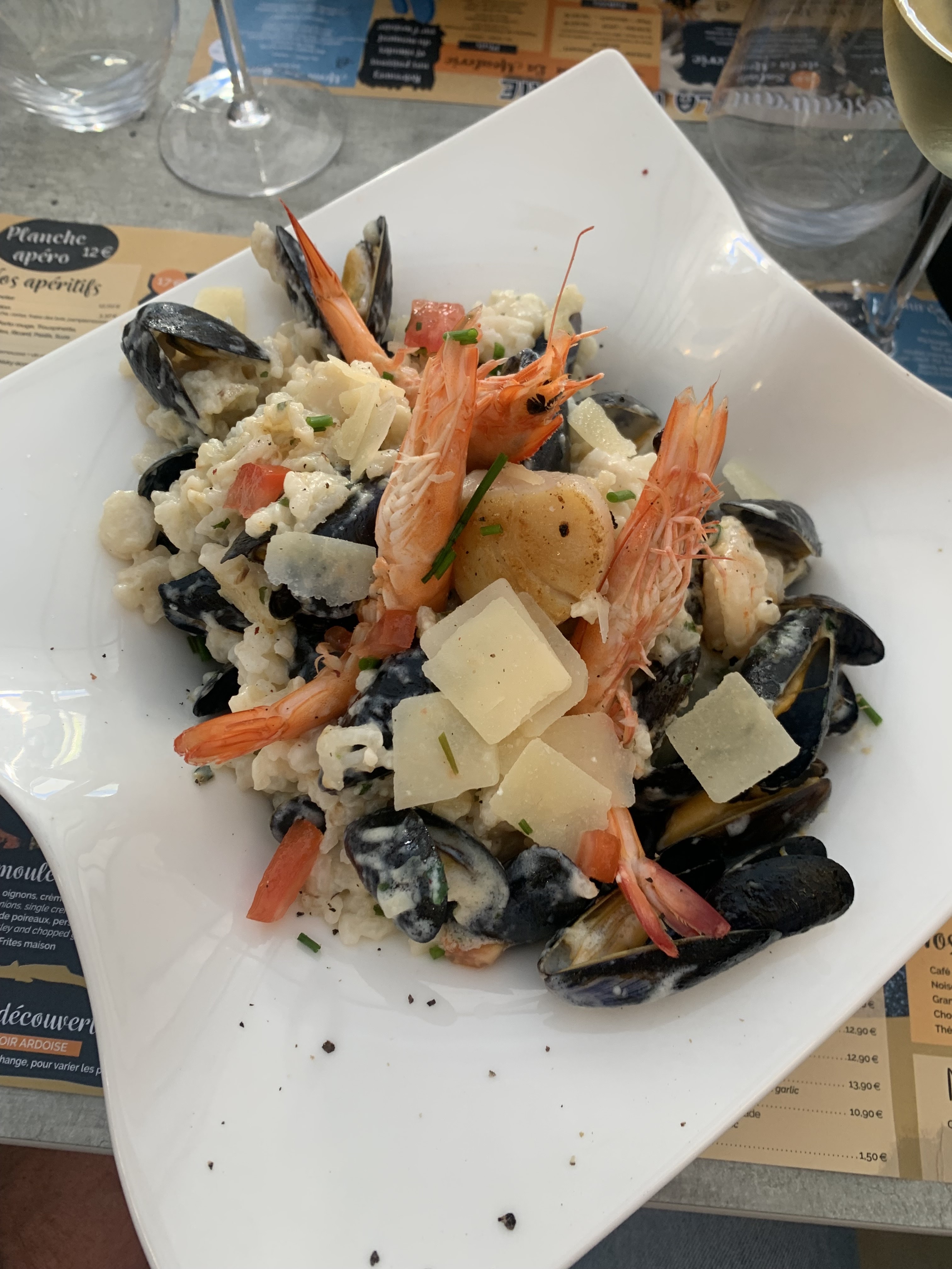Cadre agréable, accueil sympathique. Les plats sont généreux et délicieux. Le risotto aux fruits de mer, une tuerie ! Prix raisonnables compte tenu de la qualité. A refaire pour d'autres plats qui ont l'air tout aussi appétissants.