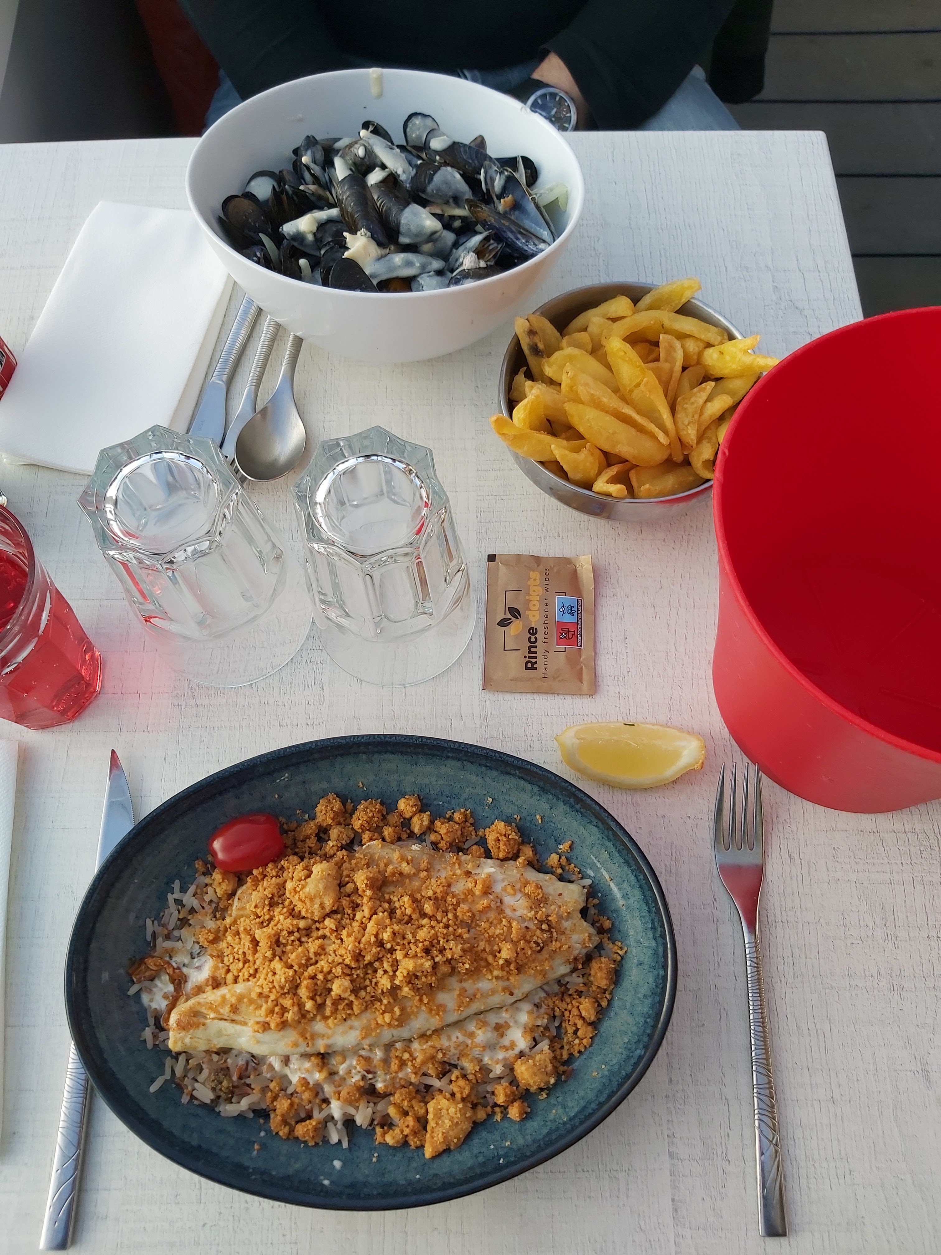 A peine arrivée, direction la moulerie (13h50) et accueilli avec sourire et gentillesse. Les moules étaient parfaites 🙏