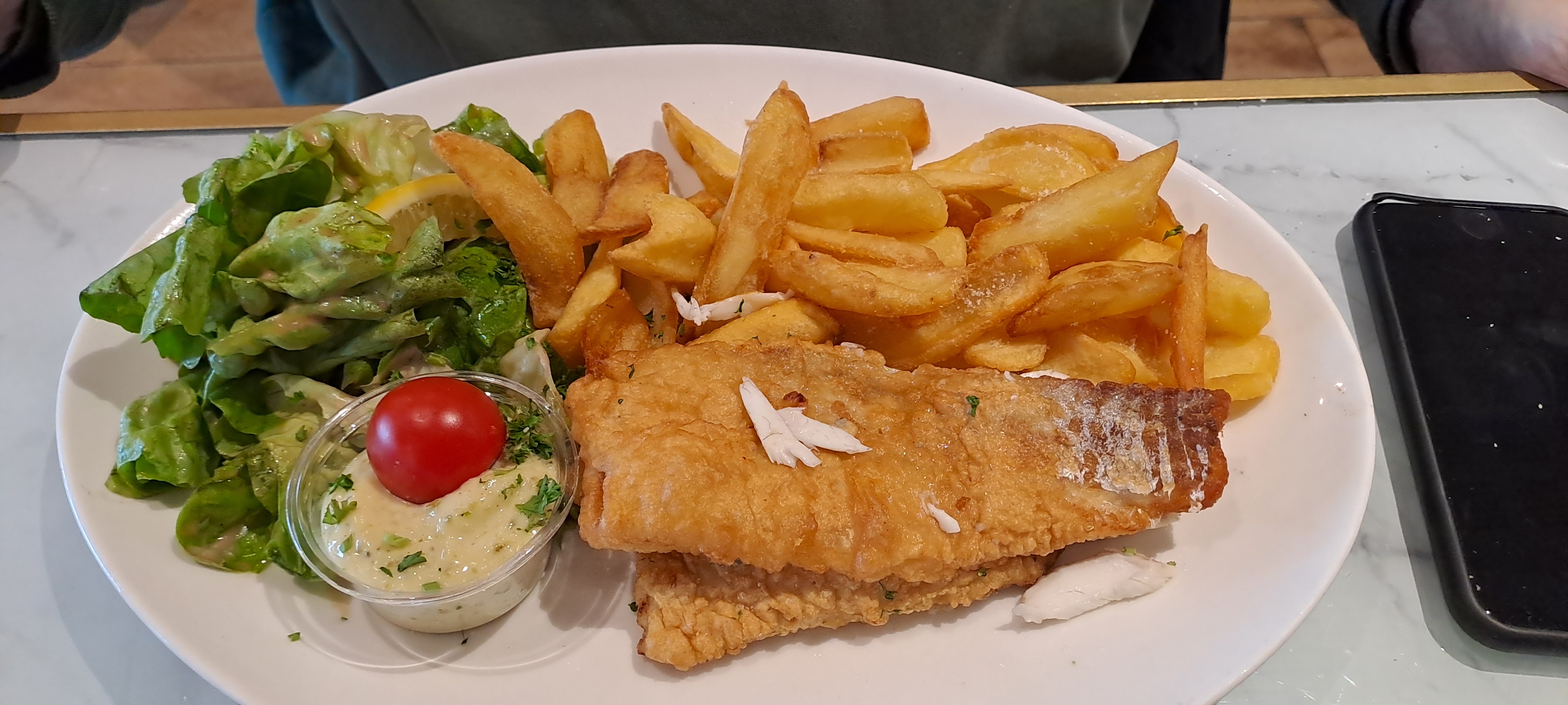 Excellent restaurant ! Je le place dans mon top 3 des restaurants de Ouistreham. Nous sommes venus diner un soir de semaine (jeudi) et hors saison (en avril). Nous étions 2 couples et les 4 étions d’accord sur la fraicheur, le savoureux de toute notre commande. Le service a aussi été rapide et excellent et tout ça pour une addition à 75€ au total ! Nous avions pris, moules/frites, fish and chips, tartare de saumon, galette complète, autant dire des choix variés mais tout était frais et savoureux ! Et les frites maison, elles étaient lègères, bien chaude et pas grasses ! Je recommande vivement !