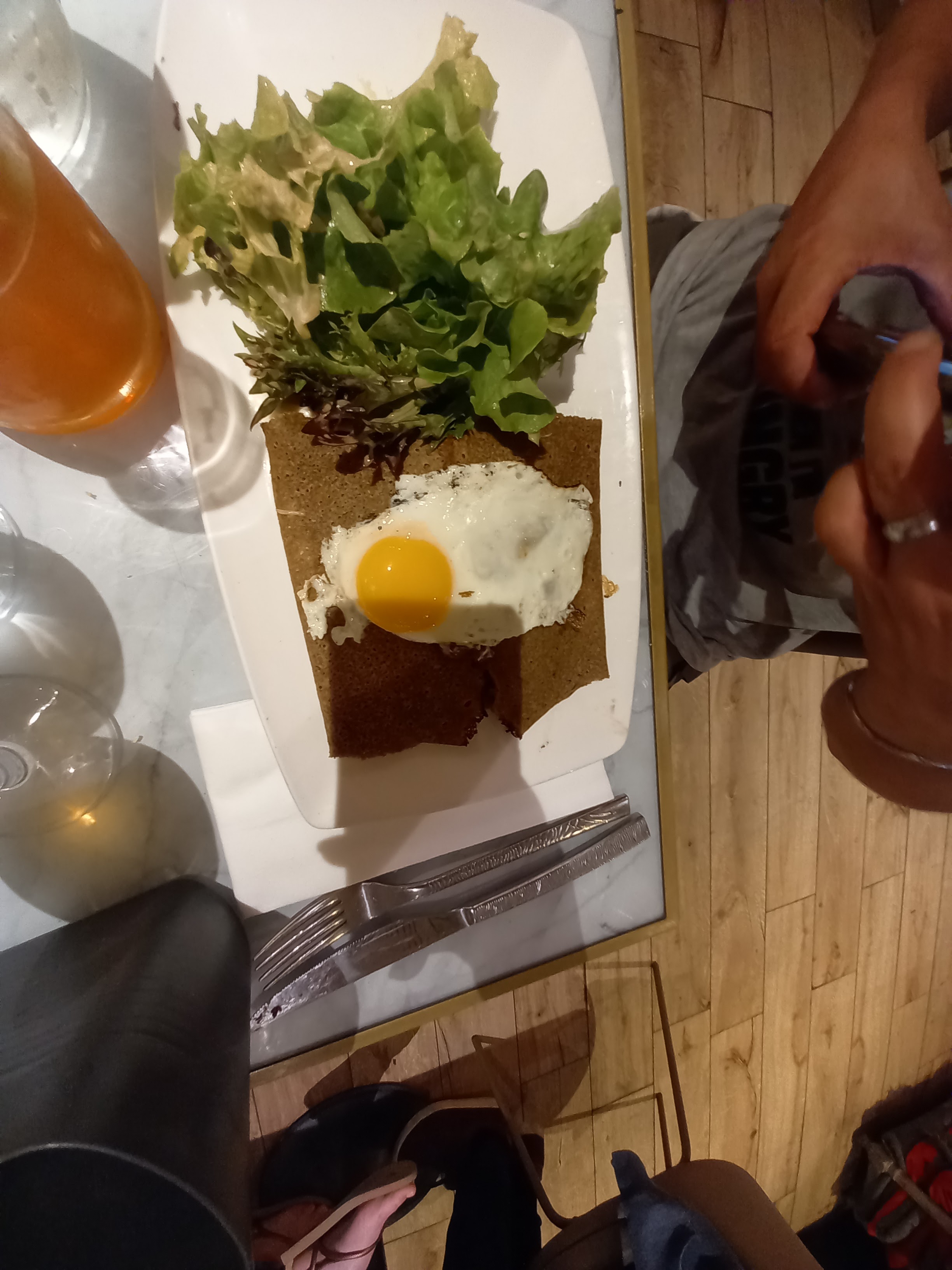 Superbe décoration intérieure. Assez mitigé sur les plats, galette forestière déçue lardons très gras, croquant sous la dent très désagréable assiette non terminée, revoir aussi la crêpe beurre sucre car une crêpe nature serait revenue au même. Par contre l’escalope de saumon excellente. Serveuse pas du tout agréable, ne faisait pas propre et débarrasser les plats même si les autres n’avaient pas fini.