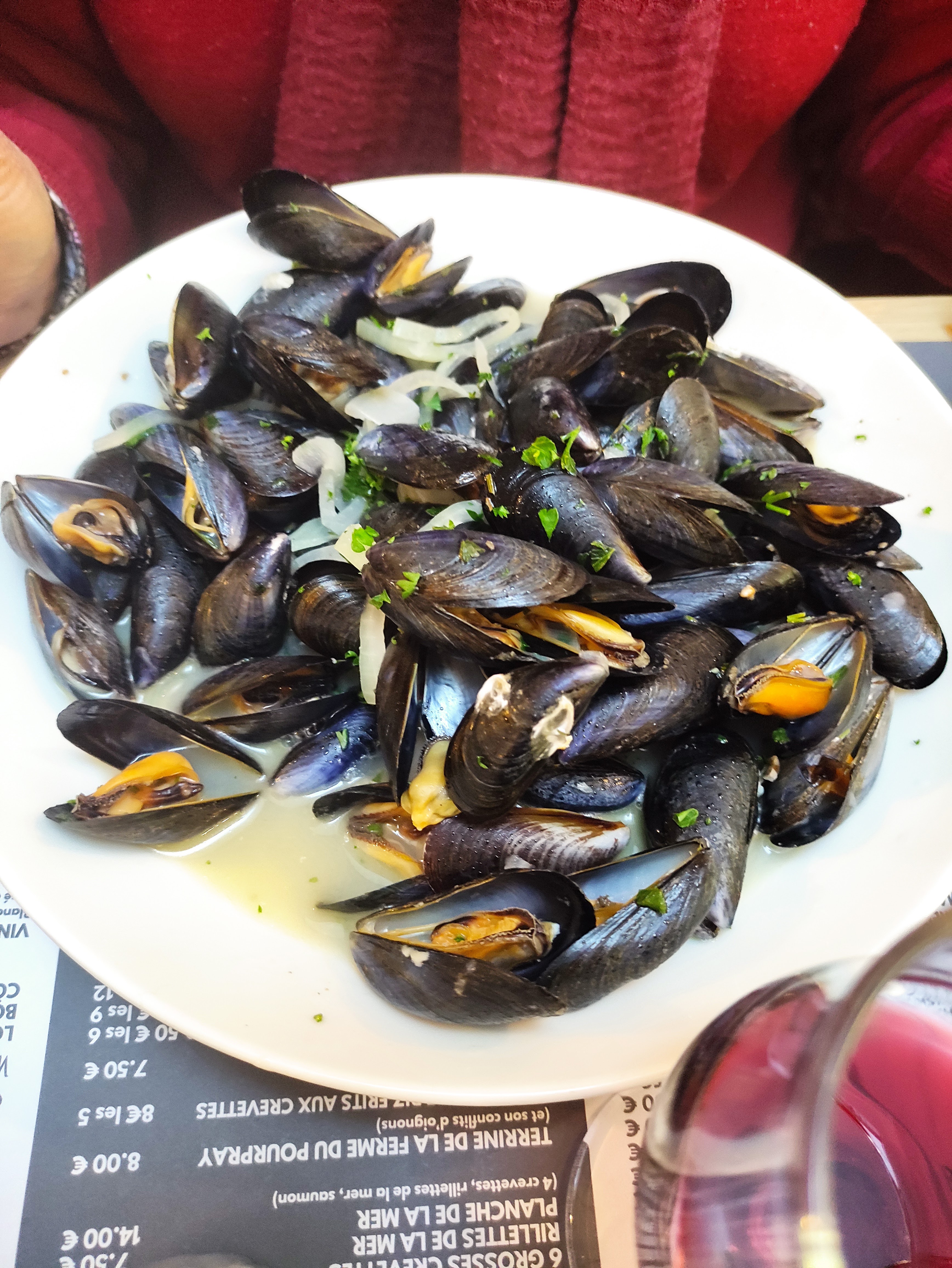 Allez y pour les moules de bouchot. Un régal. Je n'ai jamais mangé de moules aussi fraîches et aussi bien cuites. Pour un repas terrasse, prévoir un pull ou de quoi se couvrir, le vent marin est un peu frais, mais authentique. On a adoré.