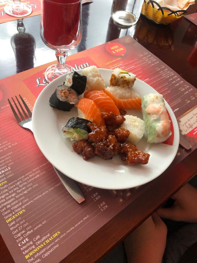 Petit restaurant asiatique un peu dans son jus, mais potable tout de même, un choix sympa de maki et sushi, un peu moins pour le wok. Les plats chaud sont corrects, nous avons déjà payé le double dans une grande ville pour des plats fades et un accueil très moyen. Idéal pour remplir son bidou à moindre coût en famille !
