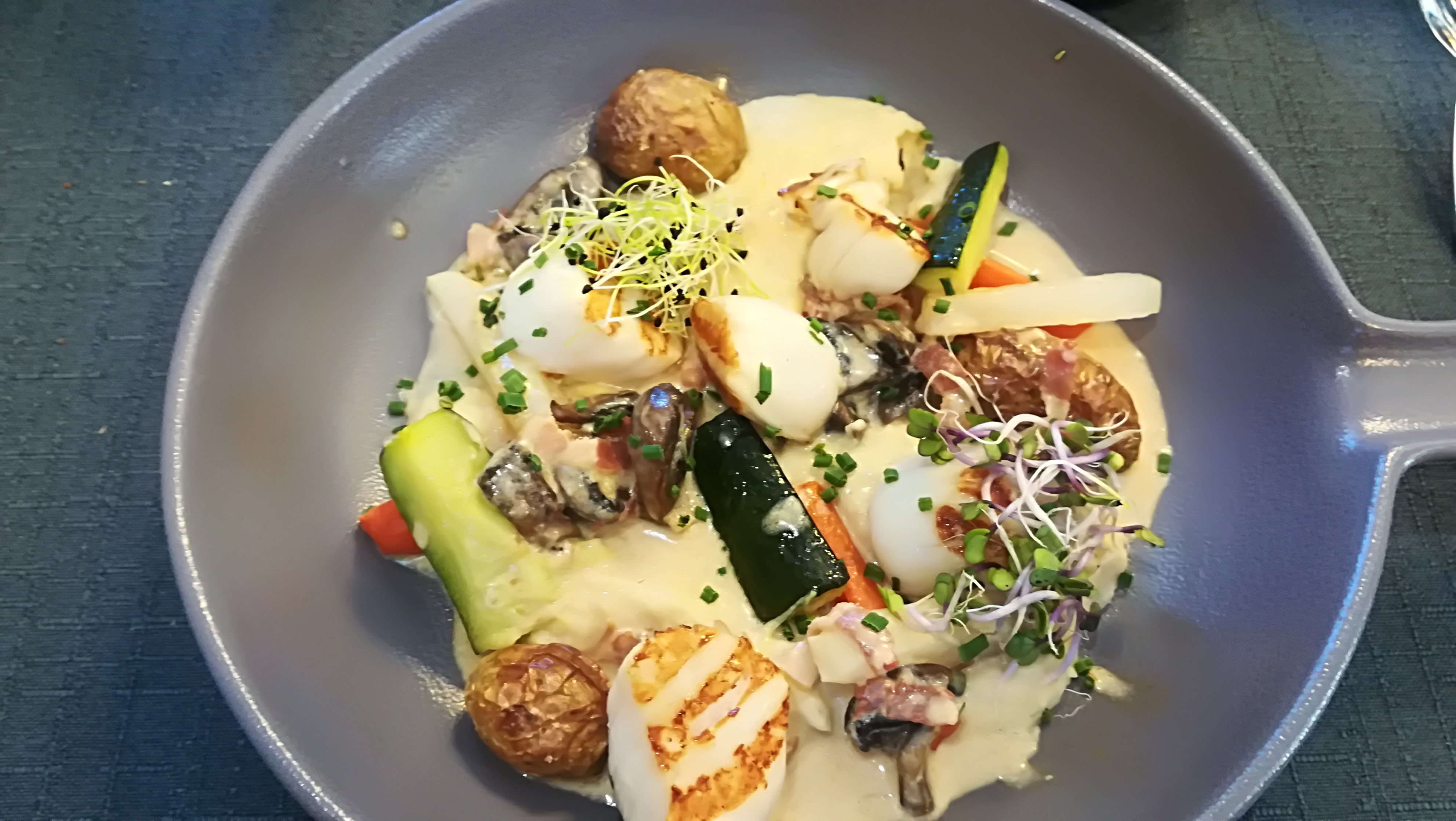 Belle salle, personnel professionnel et avant tout une cuisine pleine de saveurs : j'ai adoré le mélange terre (andouille) et mer (Saint Jacques).