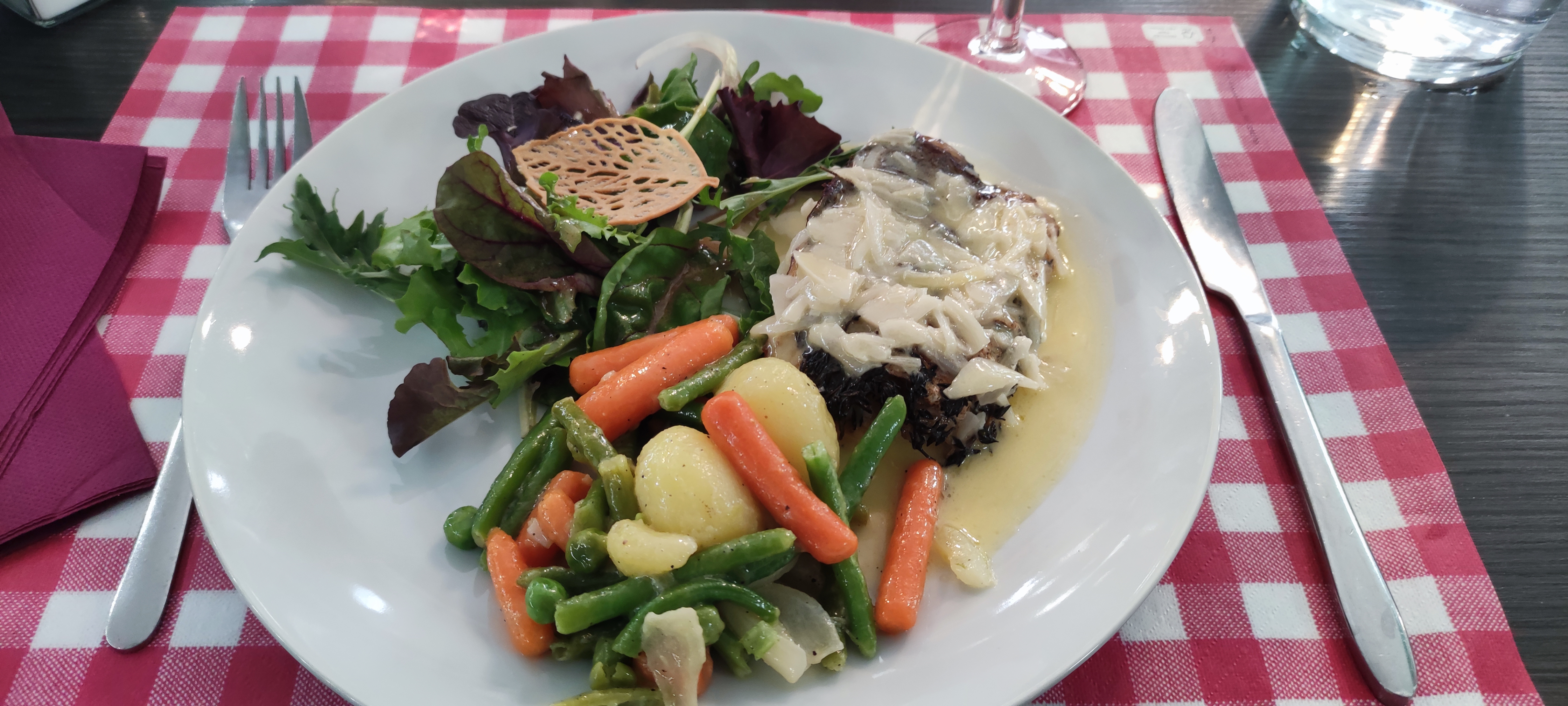 Nous avons choisi 2 menus à 13,90€, avec 1 camembert rôti en entrée et 1 filet de poulet sauce miel-abricot (en tout cas un fruit dans le genre) , purée maison. Mais plus de purée, on nous propose des pommes de terre sautées à l'ail. Heu, les pommes de terre c'est pas ce qui donne de la purée aussi ?? Bref. Le camembert vient de chez Carrefour, gros étonnement, même s'il était bon. Ensuite le garçon de salle étant proche de l'inefficacité, le patron(à priori) était débordé du coup, mais très gentil ceci dit. On nous oublié un bon moment, et finalement une fois servi, la sauce était correcte mais le miel-abricot, on le cherche toujours, et les patates très très sautées ne devaient pas aimer l'ail. Dommage parce que nous oui... Heureusement le rosé était très bien. Bilan: ça se mange quand on a faim, mais c'est du niveau cantine, pas plus. Qu'on ne vienne pas me répondre qu'il fallait le signaler : on ne sert pas un plat sans savoir comment on l'a cuisiné, et je pense avoir exprimé mon mécontentement lors de la traditionnelle question : ça a été ?...