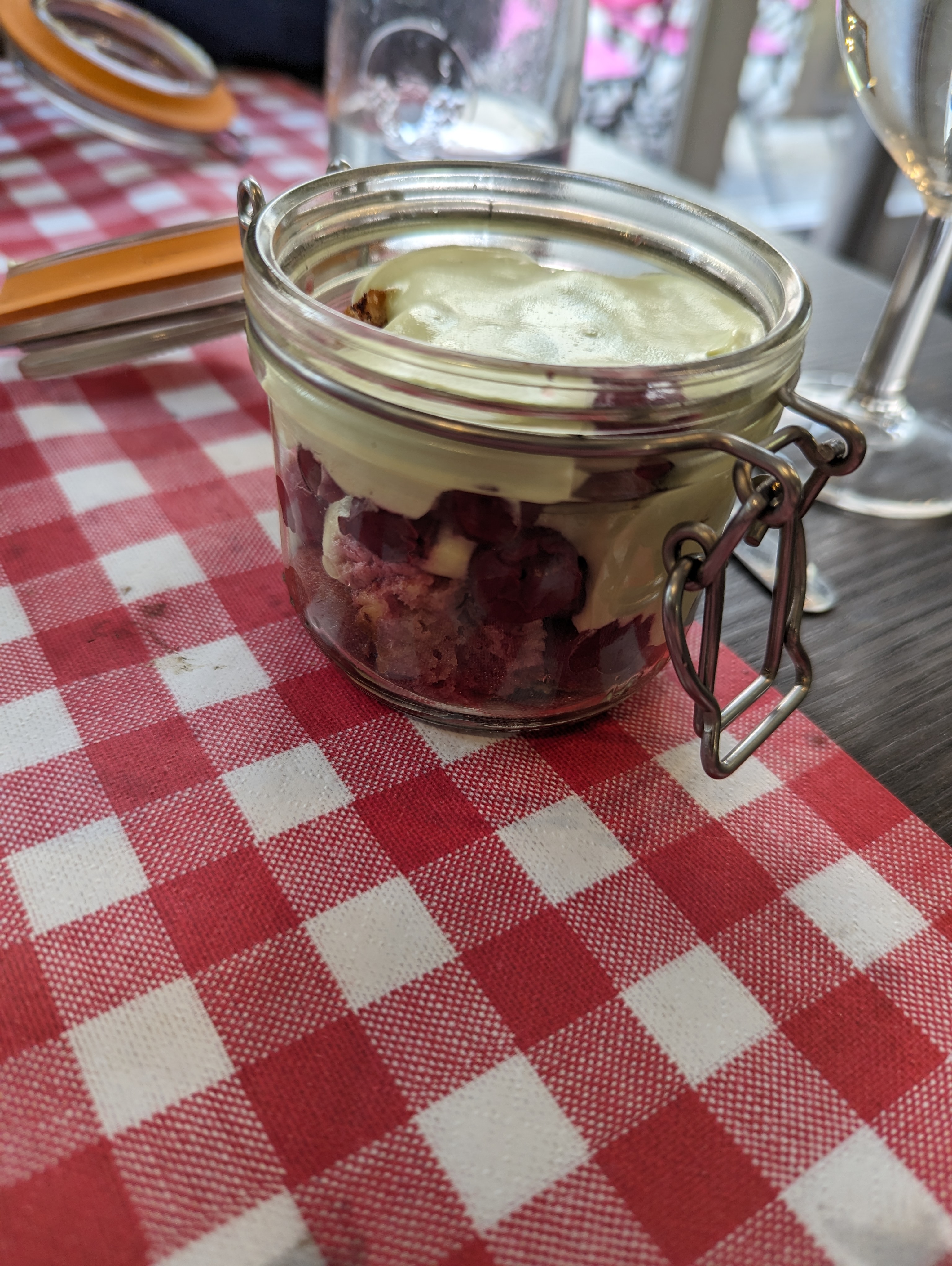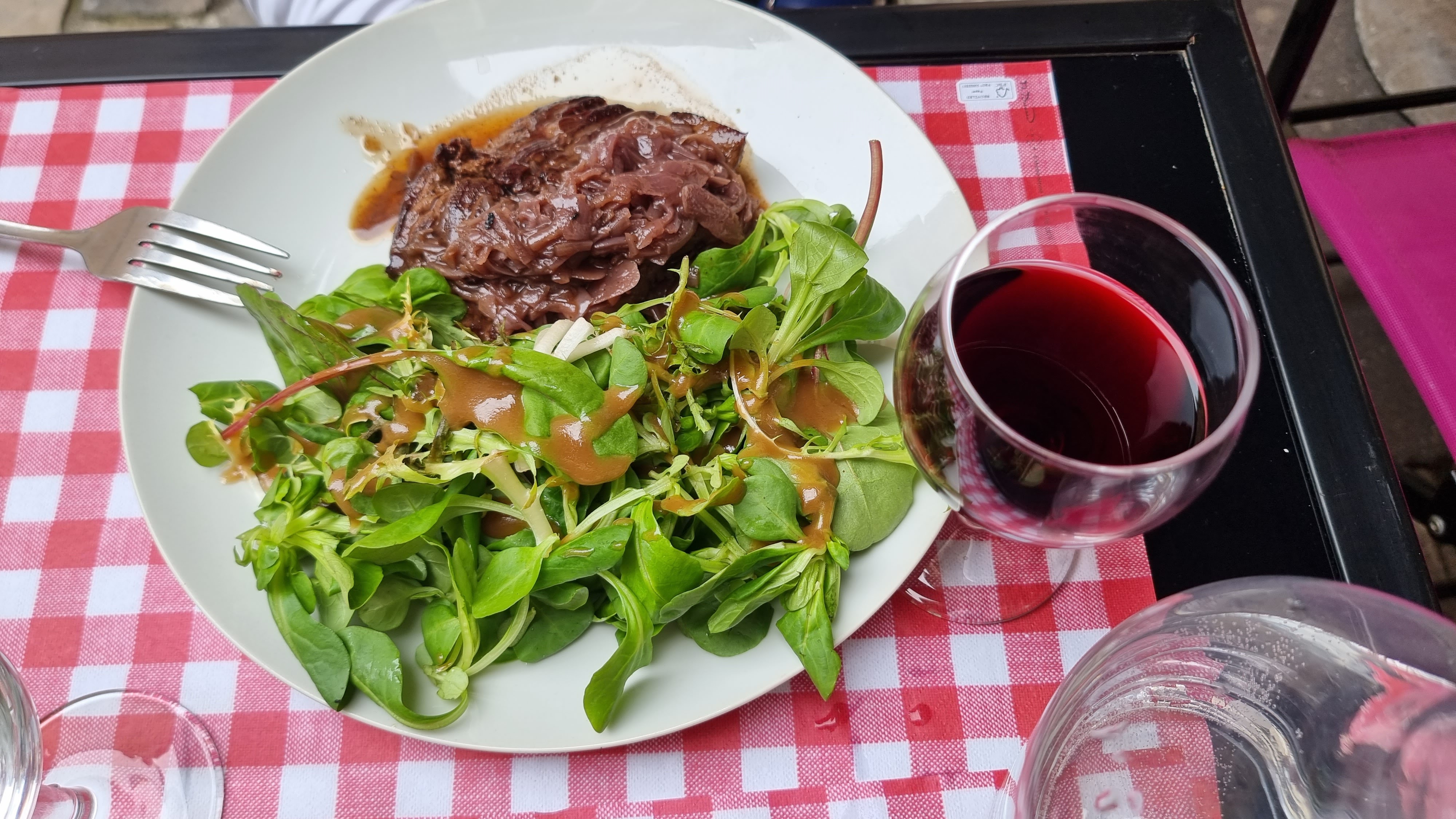 On s'est arrêté hier après midi d'abord pour un jus d'orange et aujourd'hui pour déjeuner. On a pris des salades, un tiramisu aux pêches et un fromage blanc, le tout très bien, qualité service rapide et patron sympa.