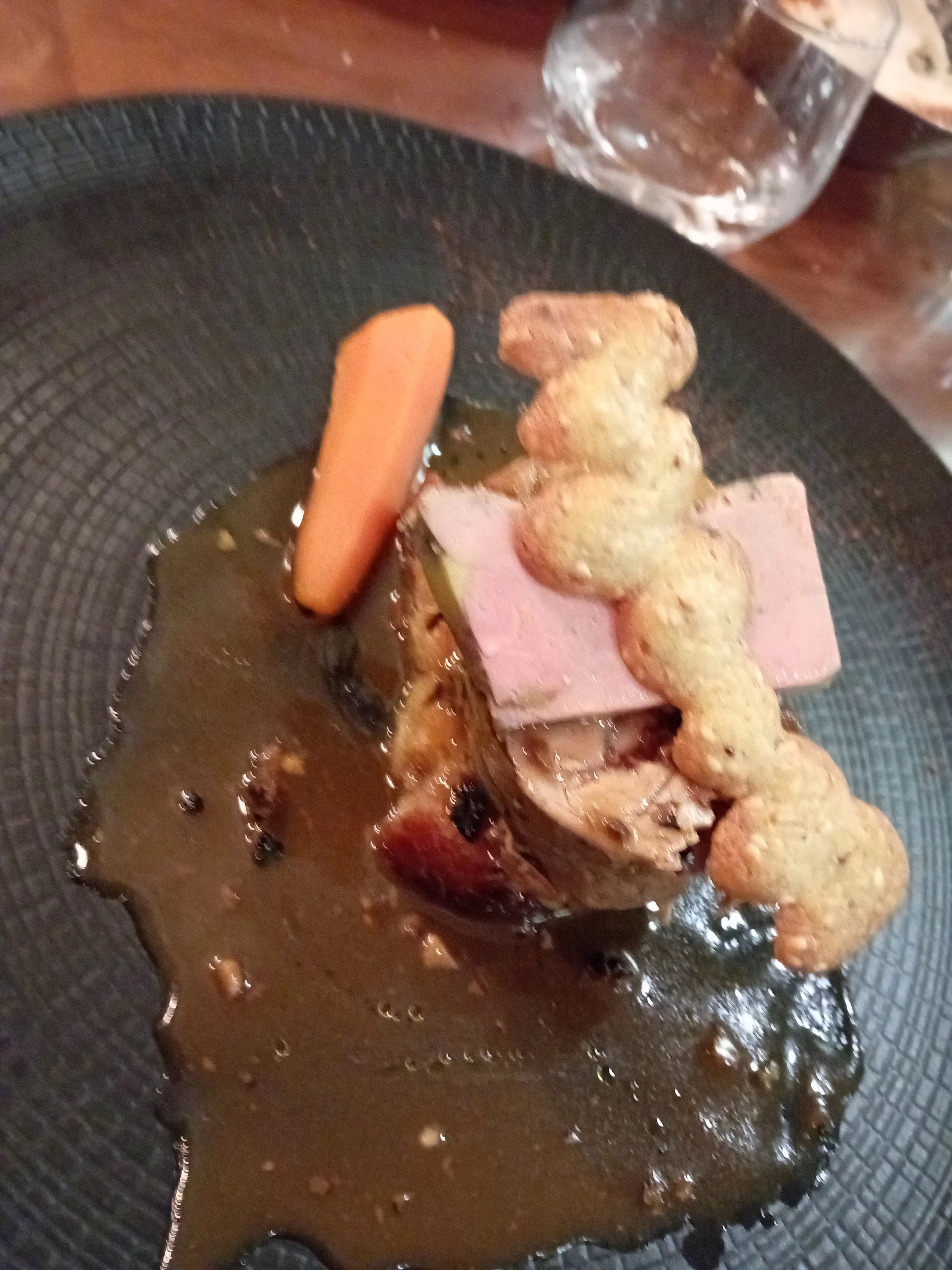 Accueil parfait, même avec un enfant. Plats exceptionnels avec des produits tres bien travaillés. Vins au verre tres qualitatifs , notamment un savagnin très aromatique et un trousseau poivré à souhait. Bref, je réserve déjà pour mon prochain passage dans le coin. Dégusté : confit de paleron de veau blanc, magret d'agneau et pintade, servi avec legumes oubliés (crosnes, panais...)