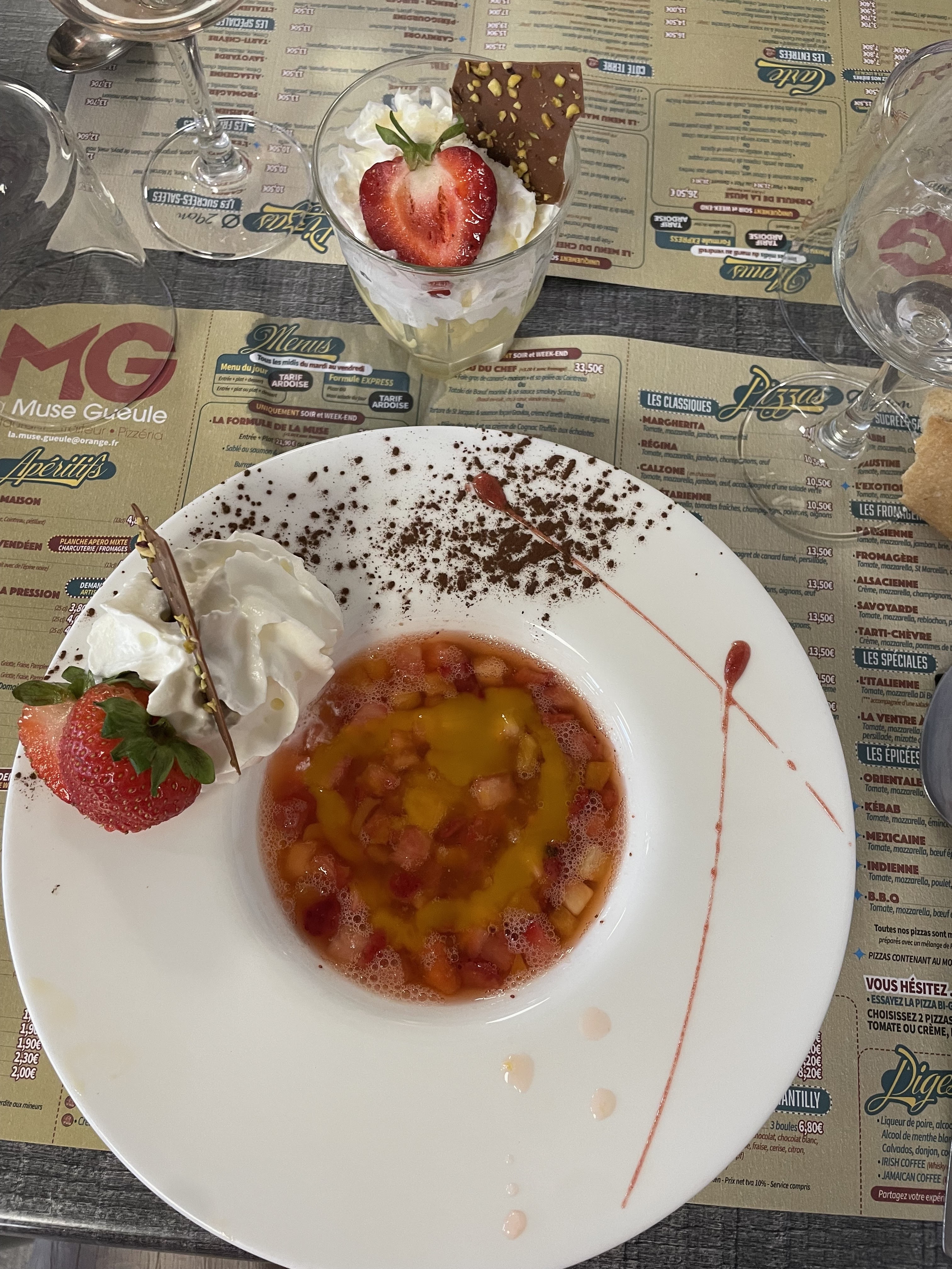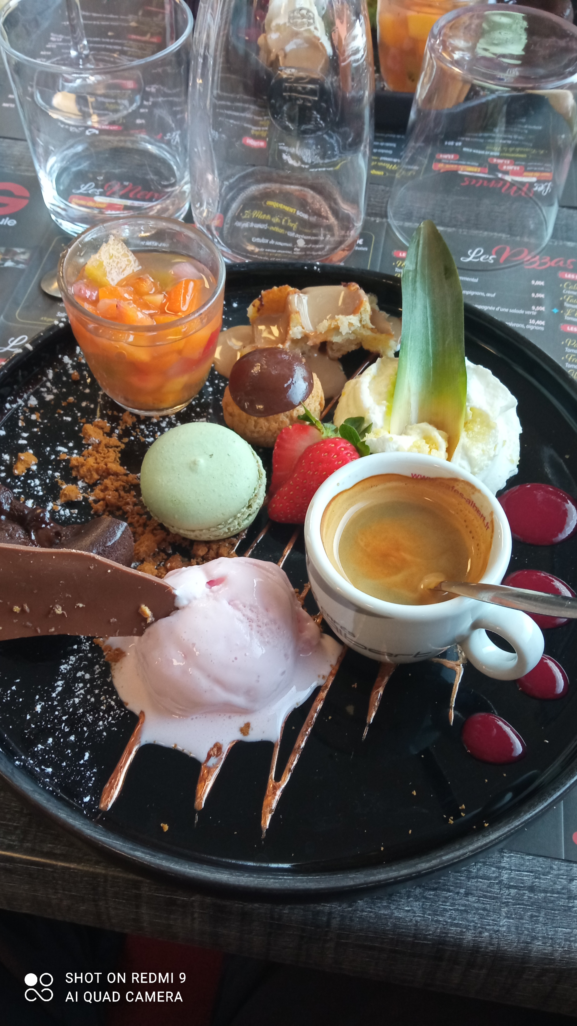 C'est la 2ème fois que nous mangeons à la muse gueule et c'est vraiment sympa bon et copieux. J'aime beaucoup cet endroit je prendrai plus de photos la prochaine fois . Je mets des photos de dessert ;profiterolles et café gourmand.