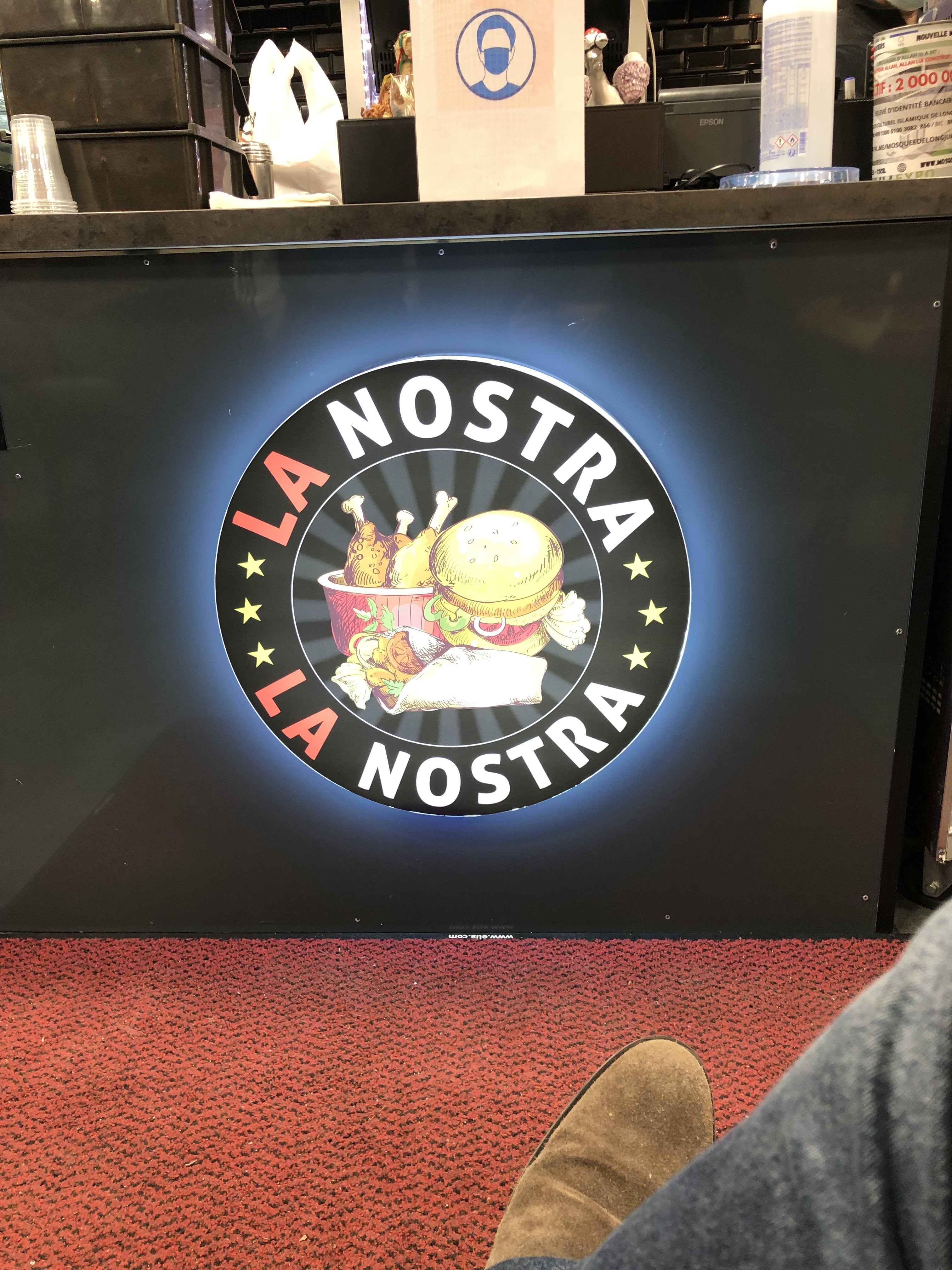 Je suis un habitué de La Nostra, ils ne m’ont jamais déçu sous aucun aspects (à part peut être le forcing à la télé des clips de Gims :D) La nourriture est bonne est pas chère, (Kebab et burger) le personnel est gentil, et pas radin ! Si vous demandez plus de viande, de frites ou de sauce, ils vous en donneront avec le sourire ! Je regrette légèrement que le Kebab ne ferme pas plus tard, mais bon je comprend l’envie de dormir ! :) La livraison Uber fonctionne bien, vous pouvez même les appeler pour commander ! Le lieu est propre, convivial, les assises confortables, en revanche il fait souvent chaud (mettez la clim les gars!) les toilettes étaient propres elles ont ensuite longtemps étaient en maintenance à l’heure actuelle je ne sais pas si elles ont étaient réparées. Bref, un très bon kebab qui ne déçoit pas !