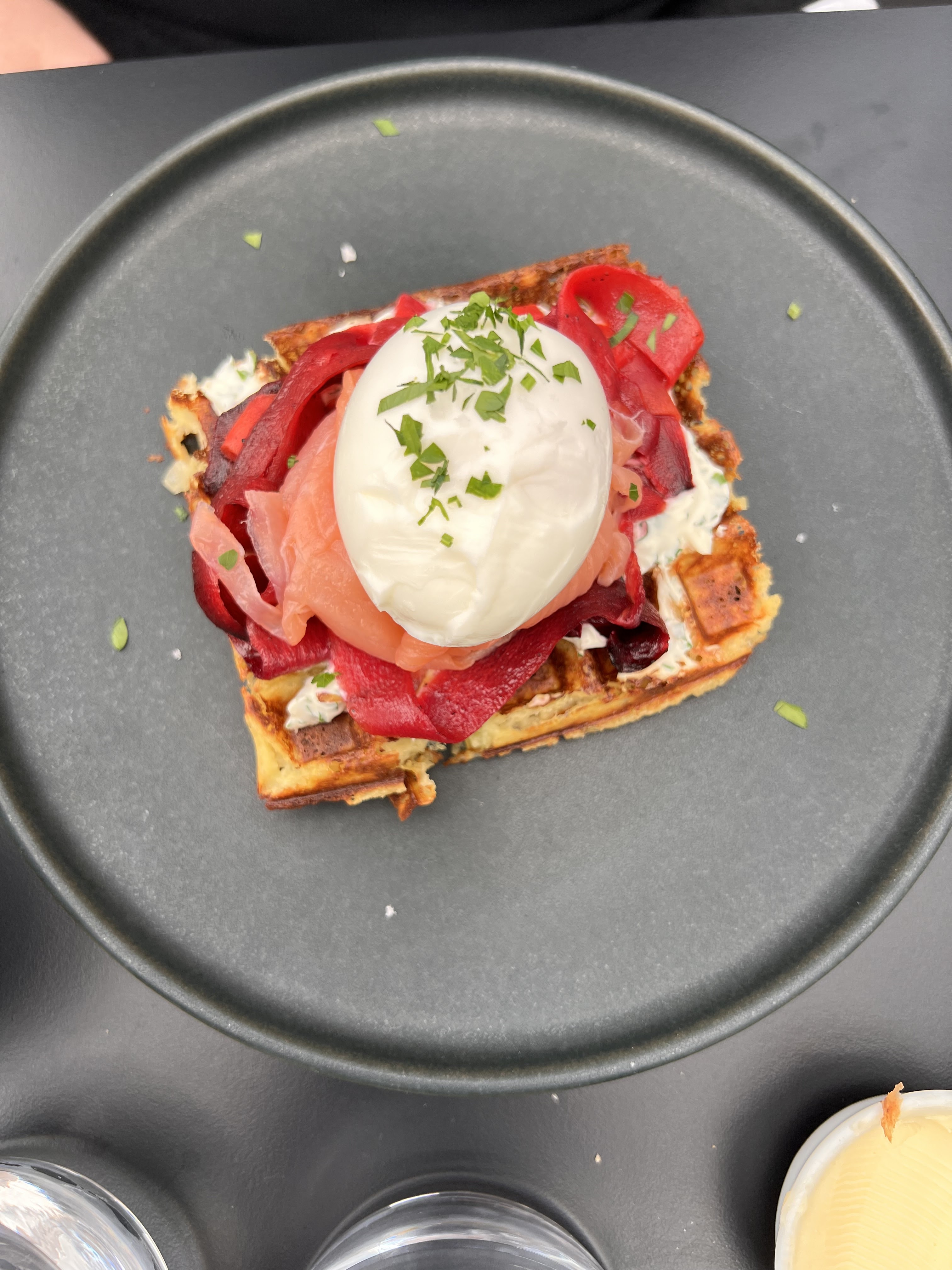 Triste assemblage de pain ou pancake, œuf, saumon, avocat et sauce hollandaise dans différents ordres... il ne fallait pas être top et encore moins chef pour nous pondre un brunch comme ça!