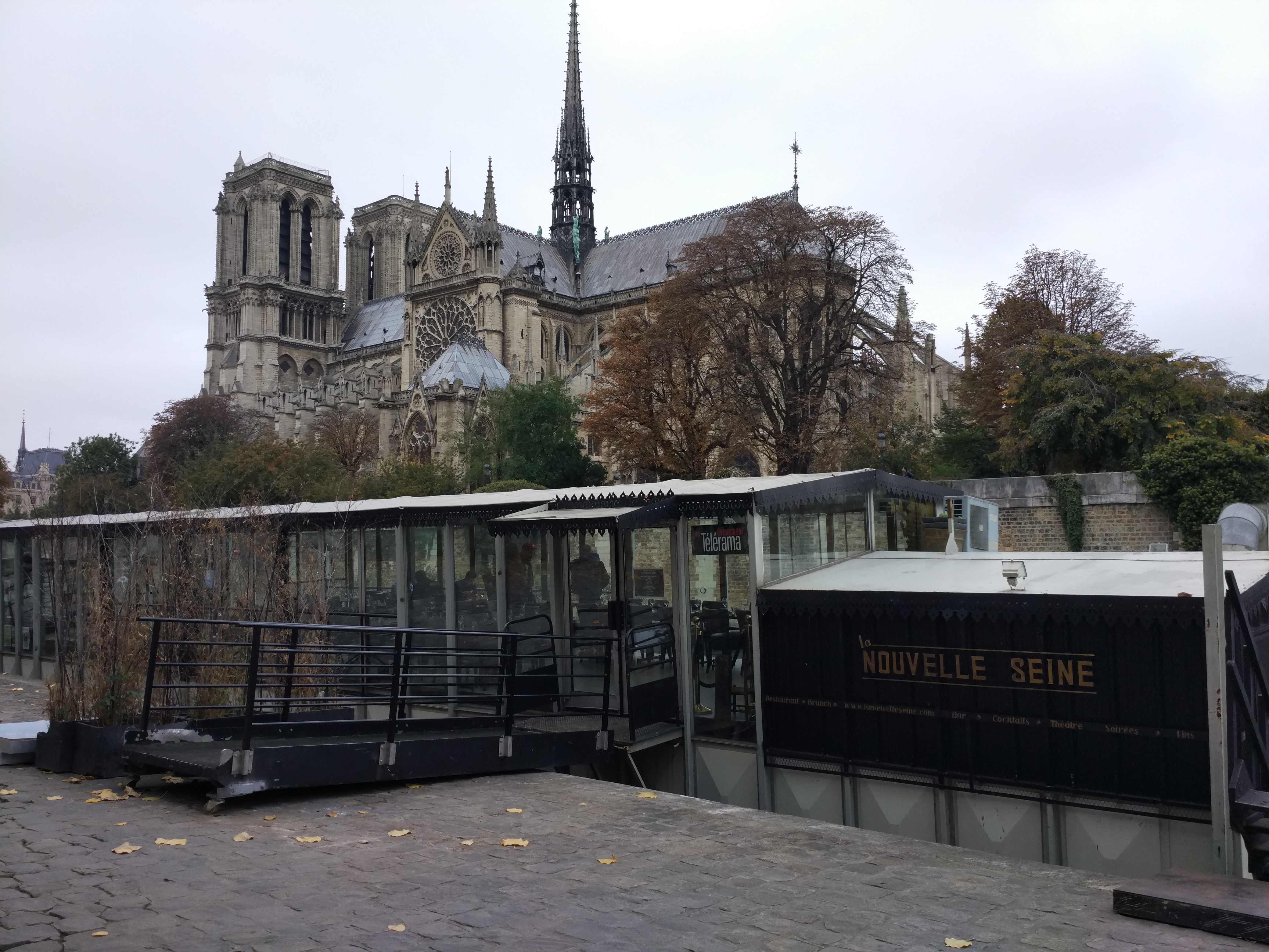 Péniche au pied de Notre Dame, bon la vue est différente depuis sa destruction. Le restaurant est sympa. Le service est correct. Les plats furent bons (délicieux tartare). Et personne n'a rechigné lorsque nous avons renvoyé le magret qui n'était pas rosé comme à notre demande. La serveuse a même ramené des frites pour que nous puissions manger ensemble. Les prix sont parisiens. Ce que je n'avais pas pensé fut les mouvements de la péniche qui m'a rendu un peu malade. Pensez-y.