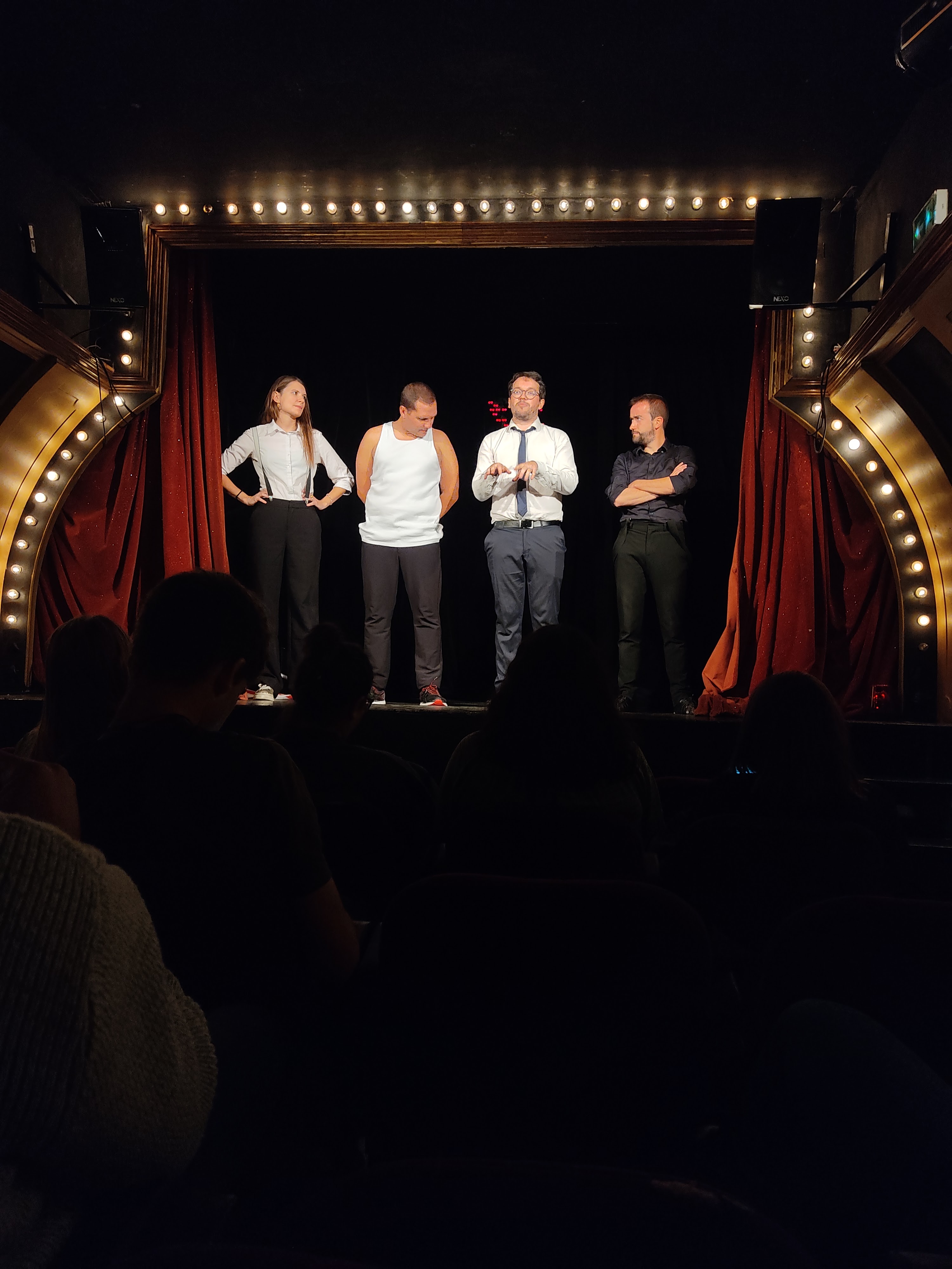 Le spectacle d'improvisation était super, au niveau des interprétations, des bascules, du jeu des joueurs. Je recommande le spectacle TIME. A voir vraiment