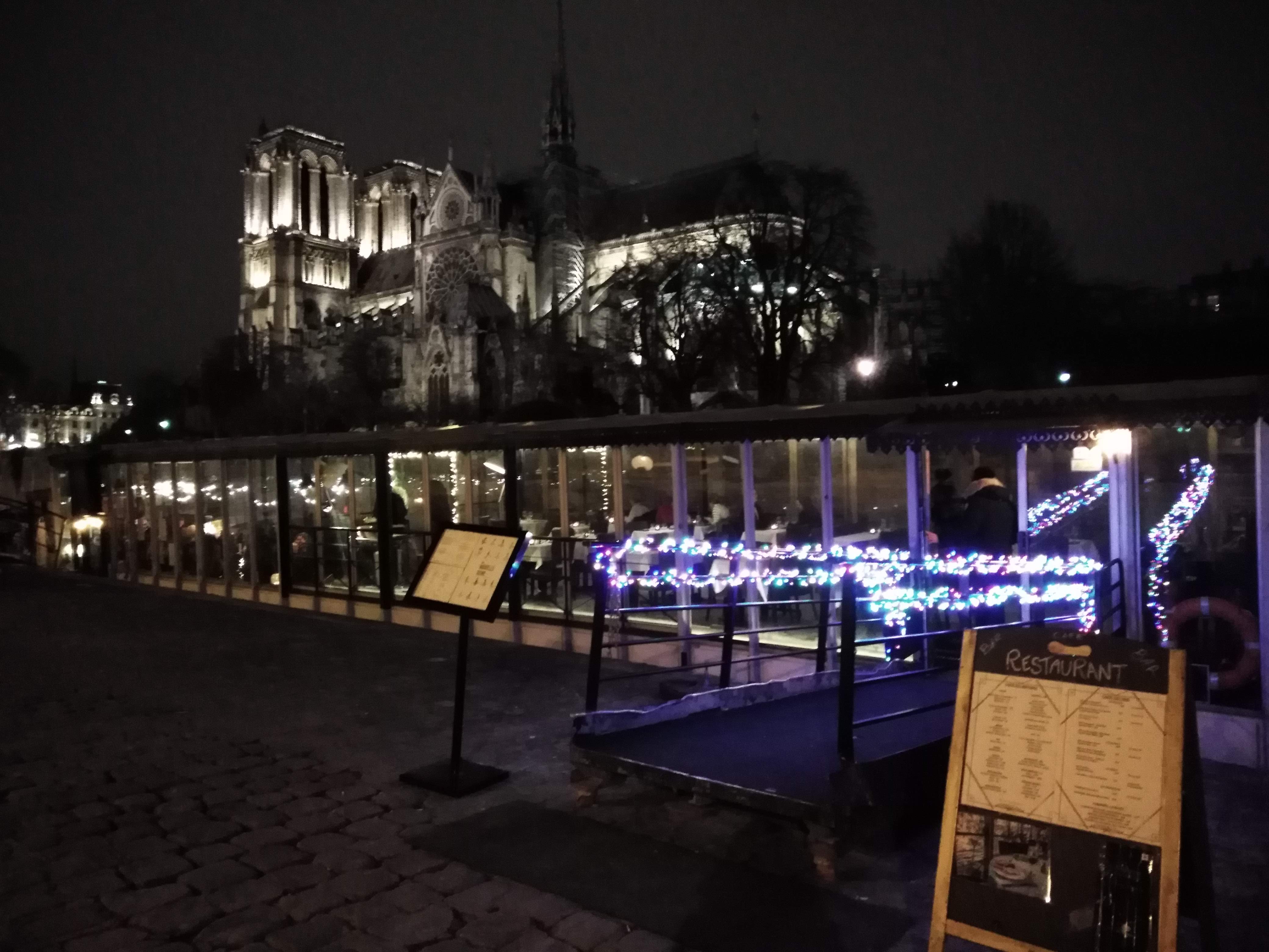 Repas délicieux sur une péniche amarrée donnant une superbe vue de la cathédrale Notre-Dame. Les prix sont quand même relativement élevés, heureusement la quantité et la qualité étaient quand même là.