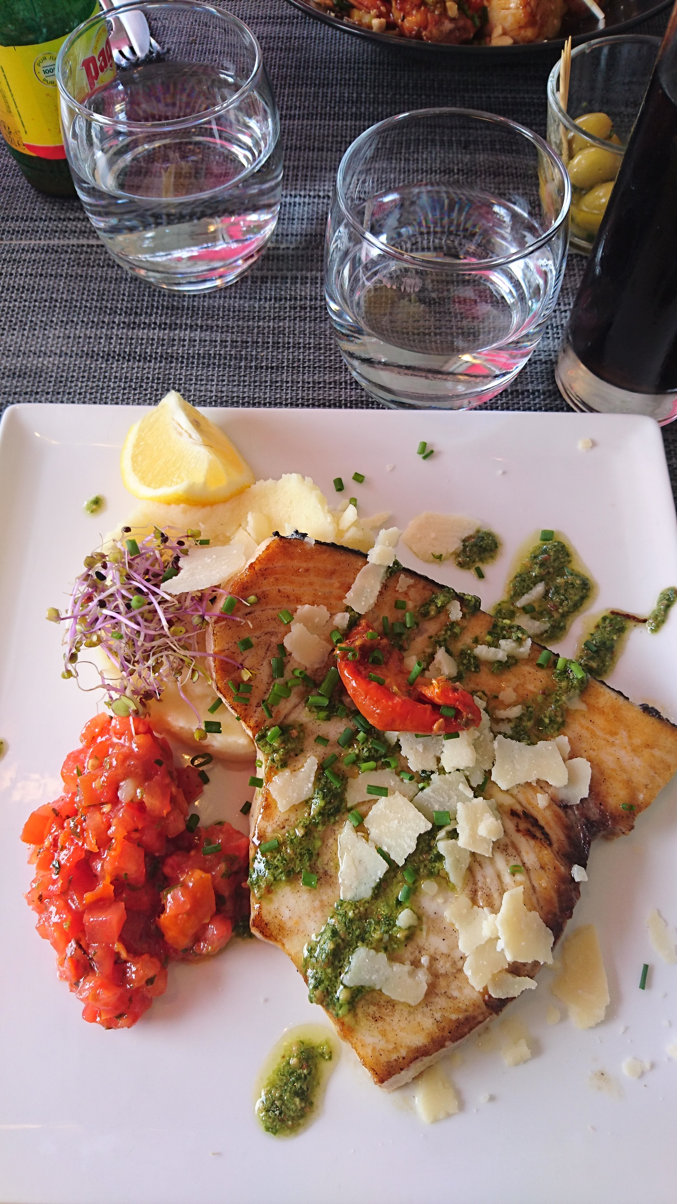 Espadon caché par la sauce soja dans le wok mais toutefois très bon, gnocchi au saumon délicieux. Vu sur le port très sympa.